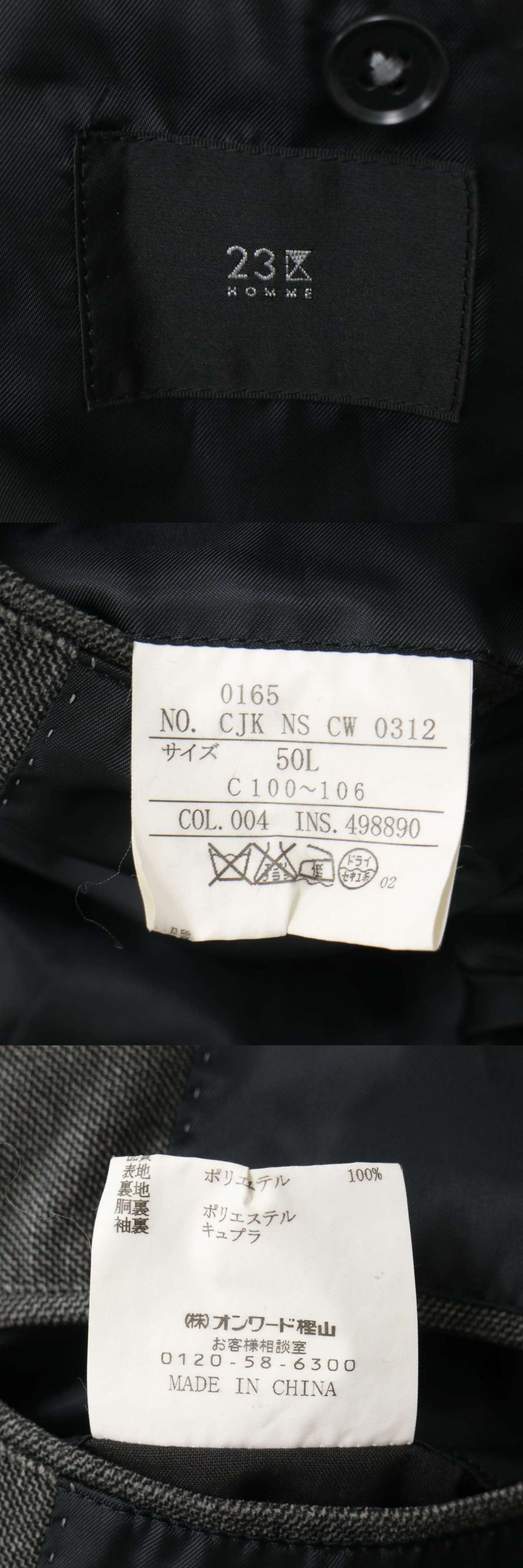 23区 HOMME オム 秋冬★ アンコン テーラード ジャケット Sz.50L メンズ 灰 グレー 大きいサイズ