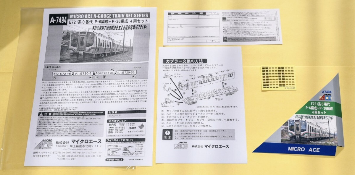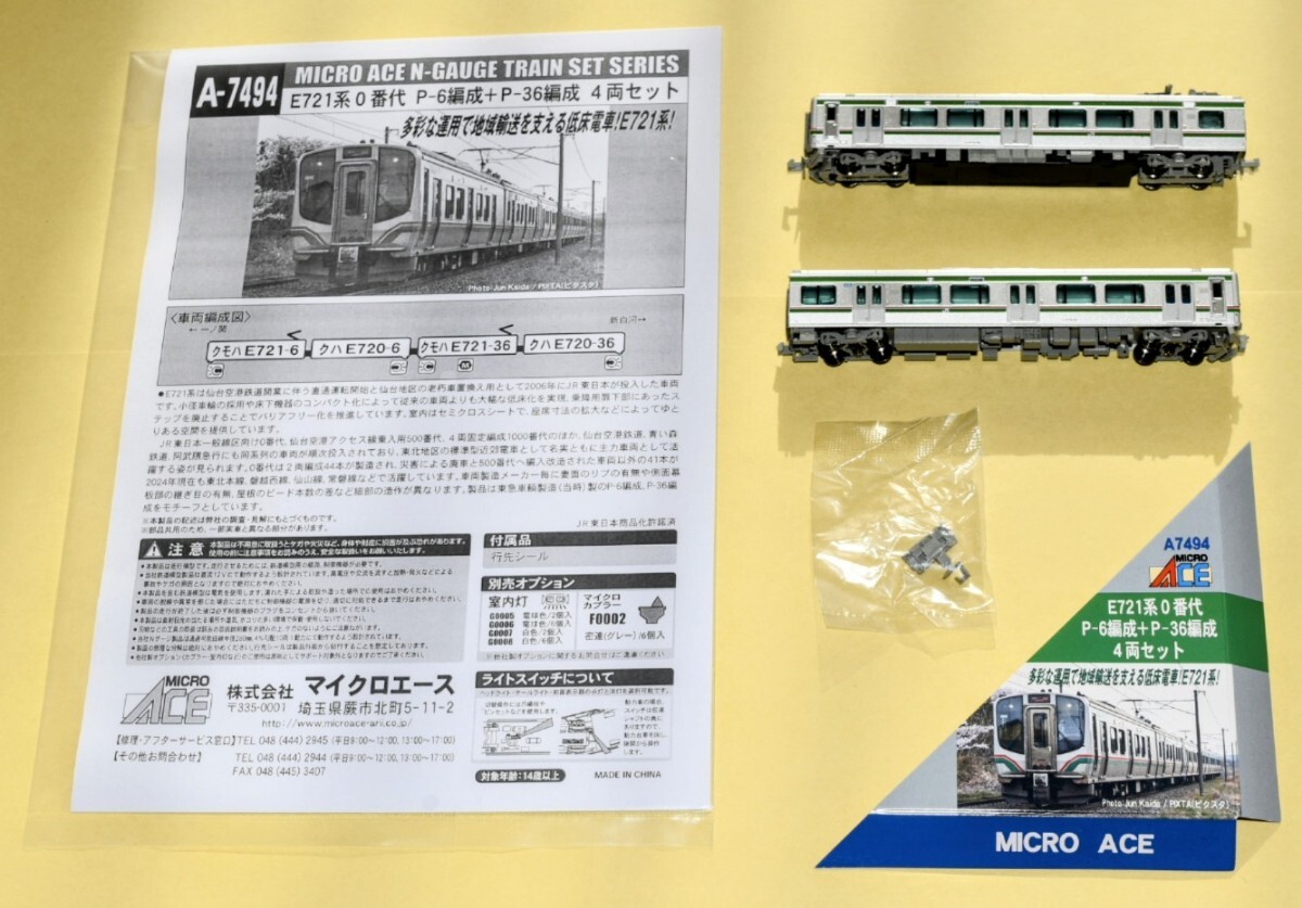 2024年12月に発売したばかりのマイクロエース 型番A7494 E721系0番代 4両セット より 【付属パーツ・説明書(行先インレタシール)付 P-36編成 クモハE721-36(M)+クハE720-36】のバラ売り商品
