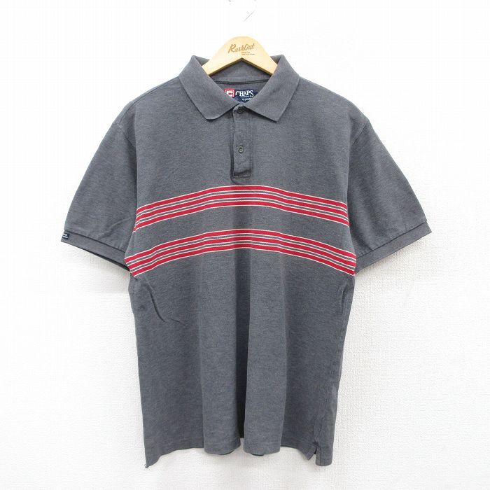 【商品名】 XL★古着 ラルフローレン チャップス 半袖 ブランド ポロ シャツ メンズ 90年代 90s 鹿の子 コットン グレー 霜降り