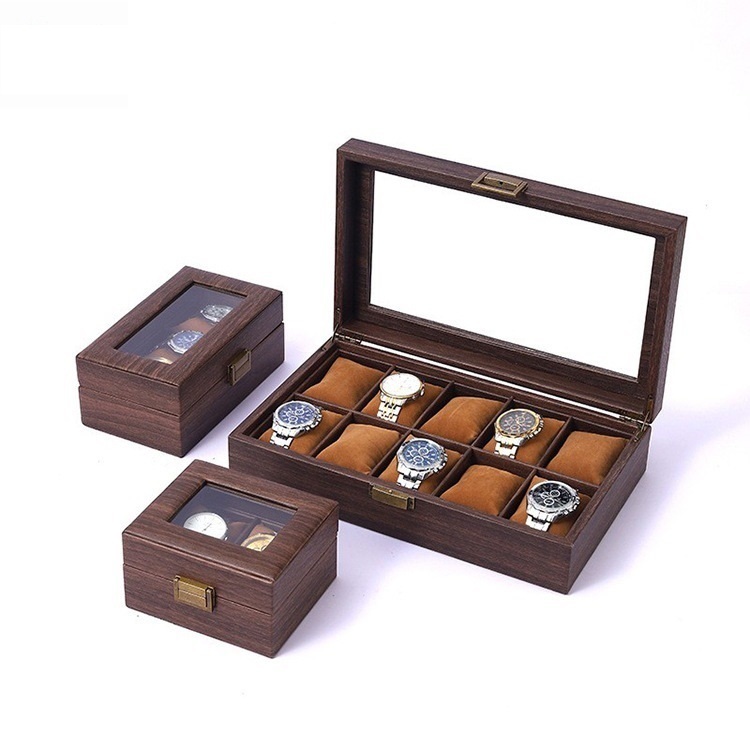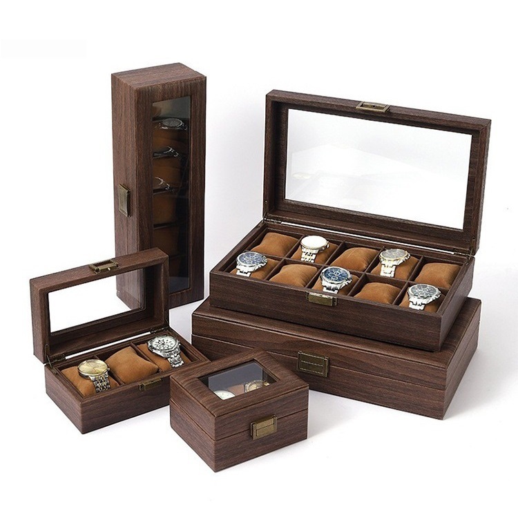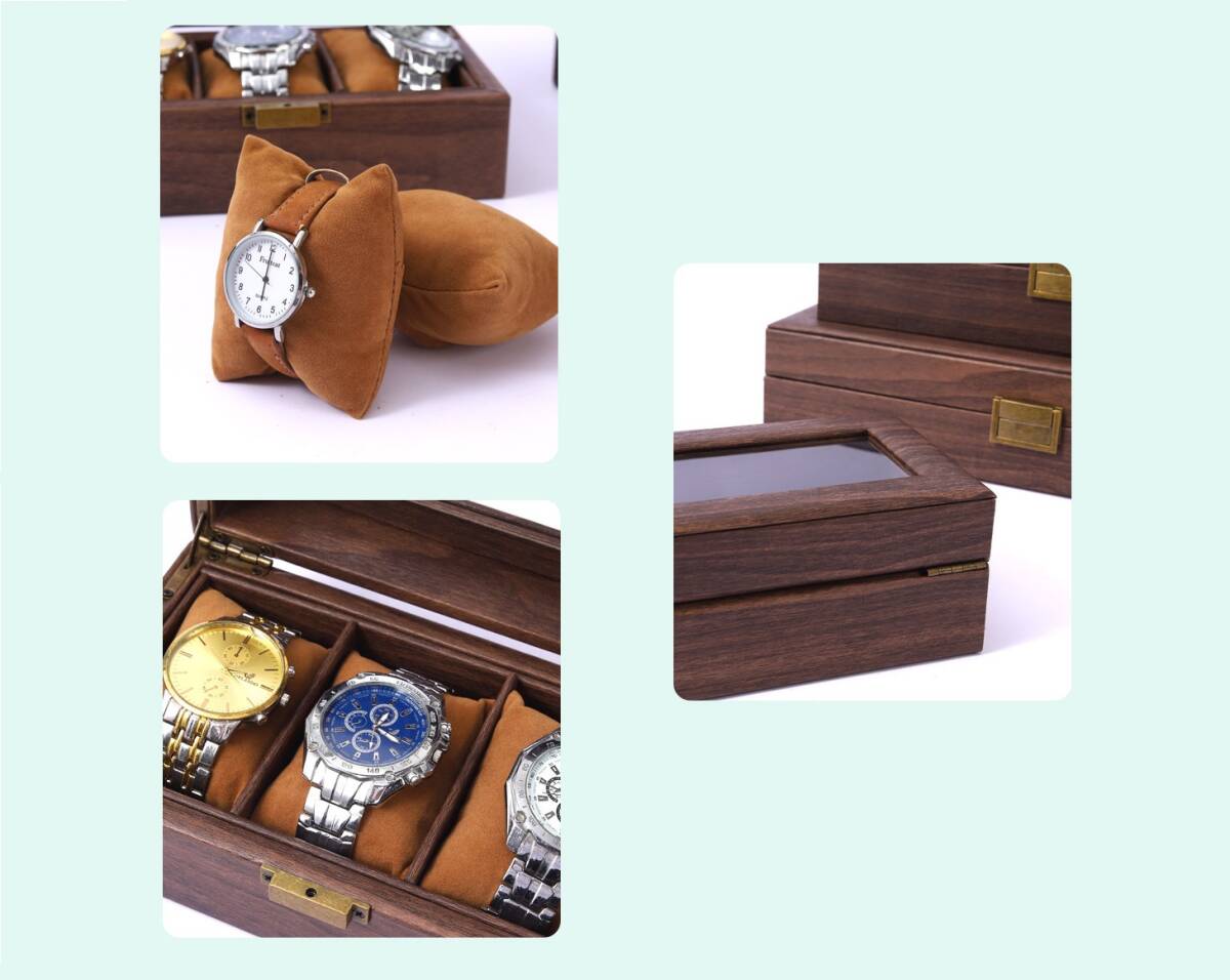 落ち着いた色味の木製収納ケースは大切な腕時計コレクションに相応しい安心感を与えます。シンプルですが、機能的なデザインは深さと直線にこだわり、上品と高級感を与えます。
