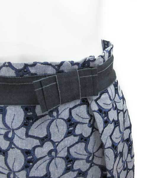 | カットワークデザインの上品なスカート。ウエスト部分にはリボンがついていて、可愛いデザイン。大人綺麗コーデやきちんと感のあるコーデが楽しめます。ニットやカットソー、ブラウスなど幅広くコーディネートして頂けます。 |