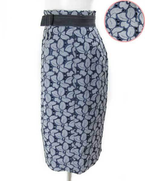 | エフデ ef-de 紺 カットワーク スカート 9 |
