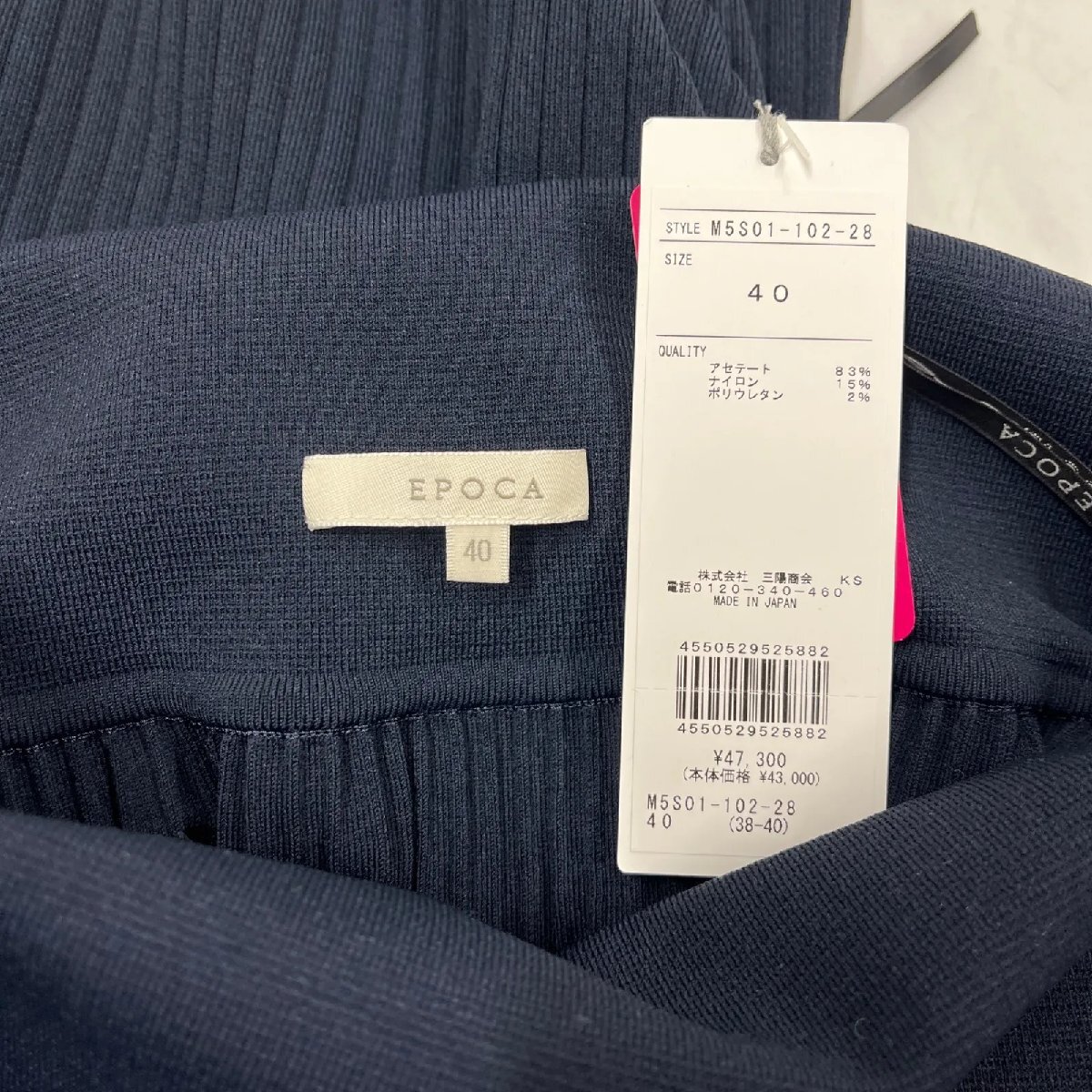 未使用 エポカ EPOCA ロング スカート リブニット 上品な濃紺 ネイビー 定価47,300円 40、M、9号 レディース 新古品 S5N438