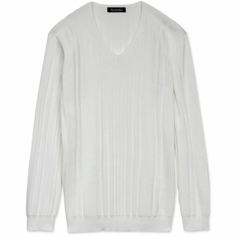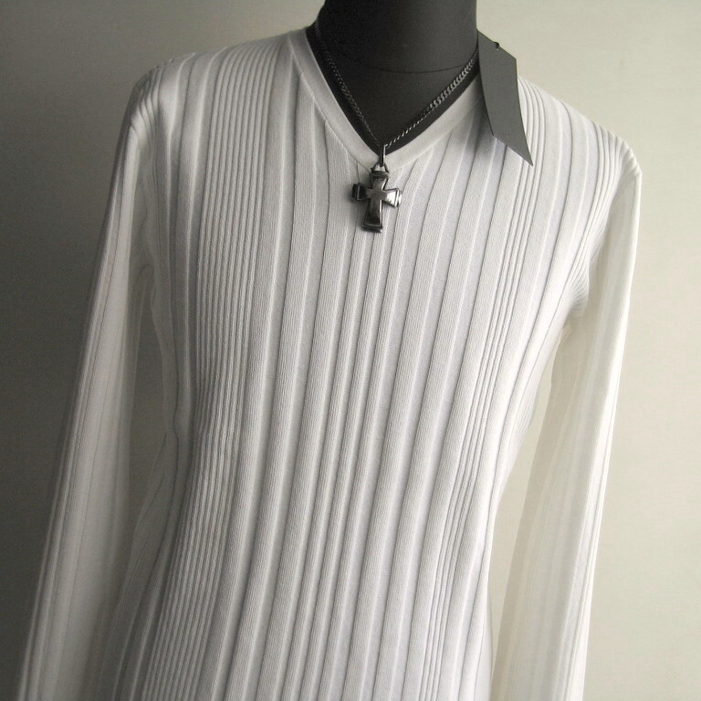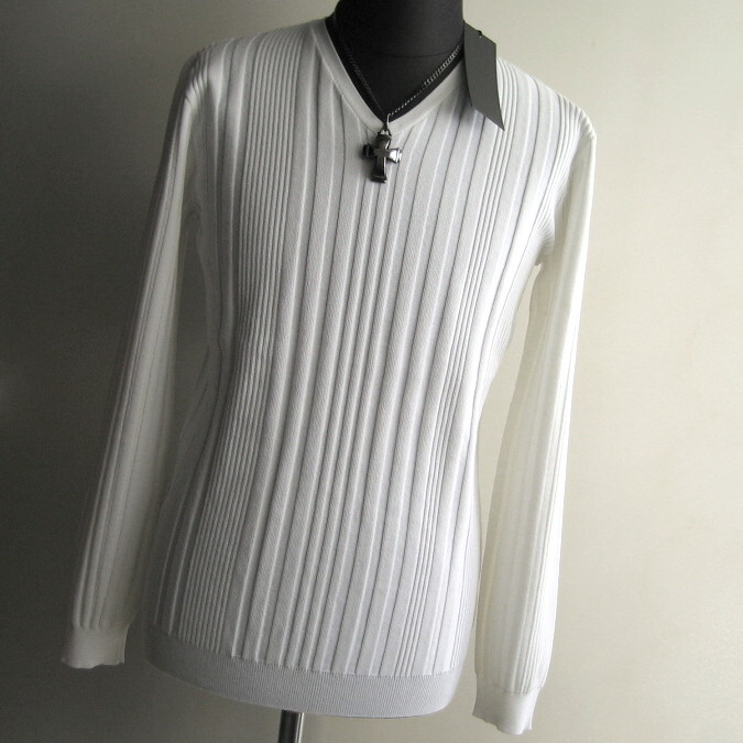 1.5万 新品 L トルネードマート ランダムテレコVネックニット長袖 ホワイト サンプル 672