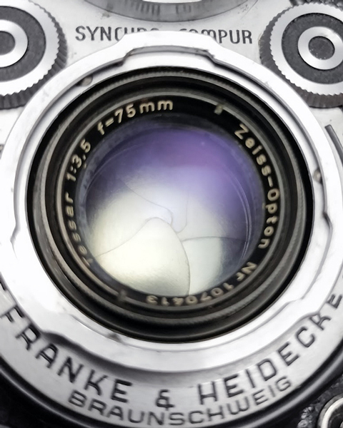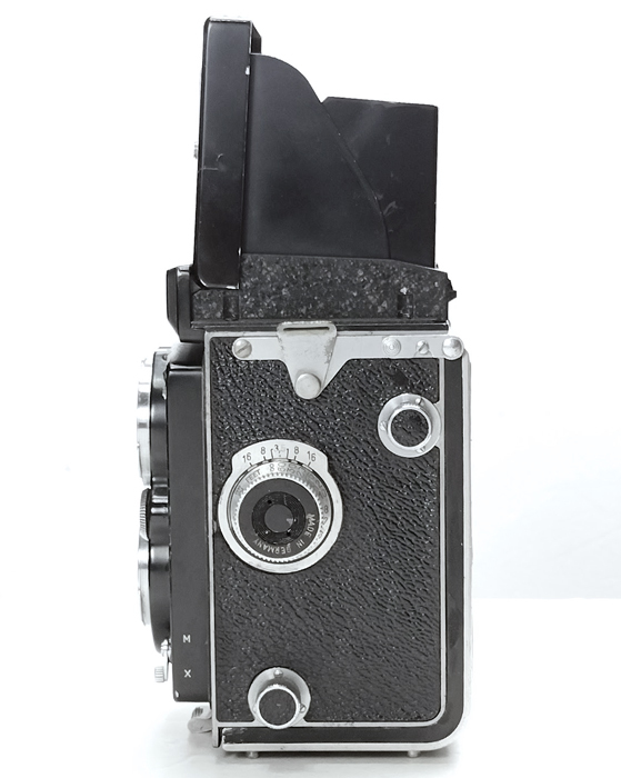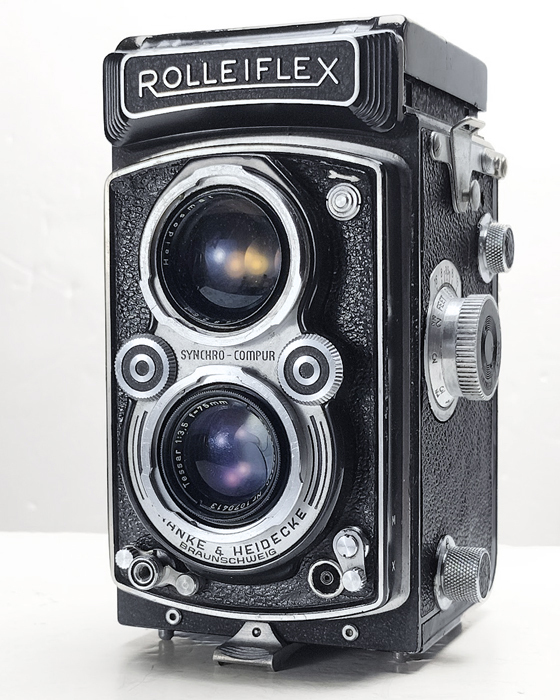 ROLLEIFLEX ローライフレックス 二眼レフ Heidosmat 1:2.8 75 + Zeiss-Opton Tessar 1:3.5 75mm シャッターは1~500まで表示なりの速度に変化し、切れています。横のノブを操作すると2つのレンズが前後し、ファインダーガラスにてピント合わせが出来ます。ファインダーの扉や背面ドア、横のハンドルなど各可動部も特に支障なく動作可であることのみ確認。他は各動作精度など含め、専門知識が無いため詳細は不明です。 外装は特に目立つ汚れは無いようですが、評価基準および表現方法が分かりませんので画像にてご判断ください。 |