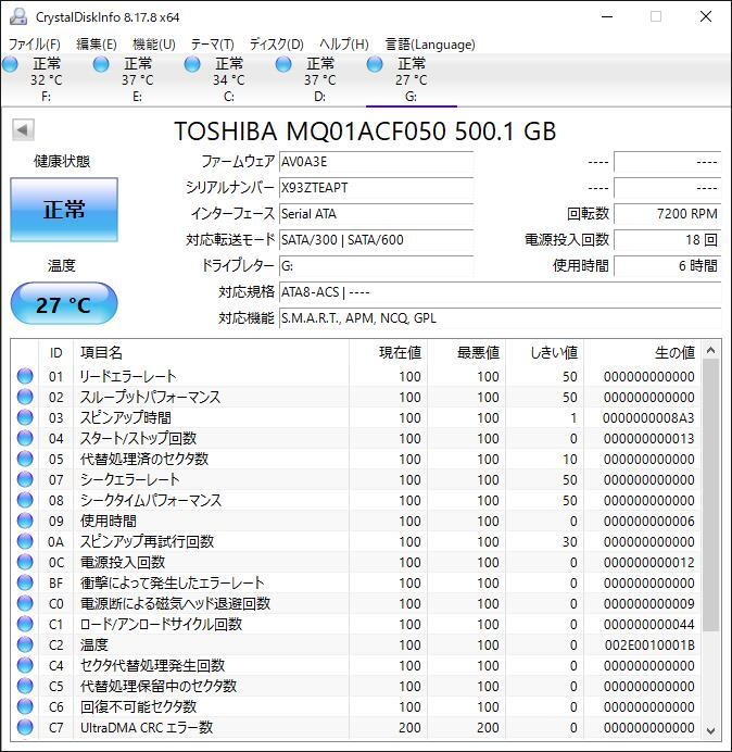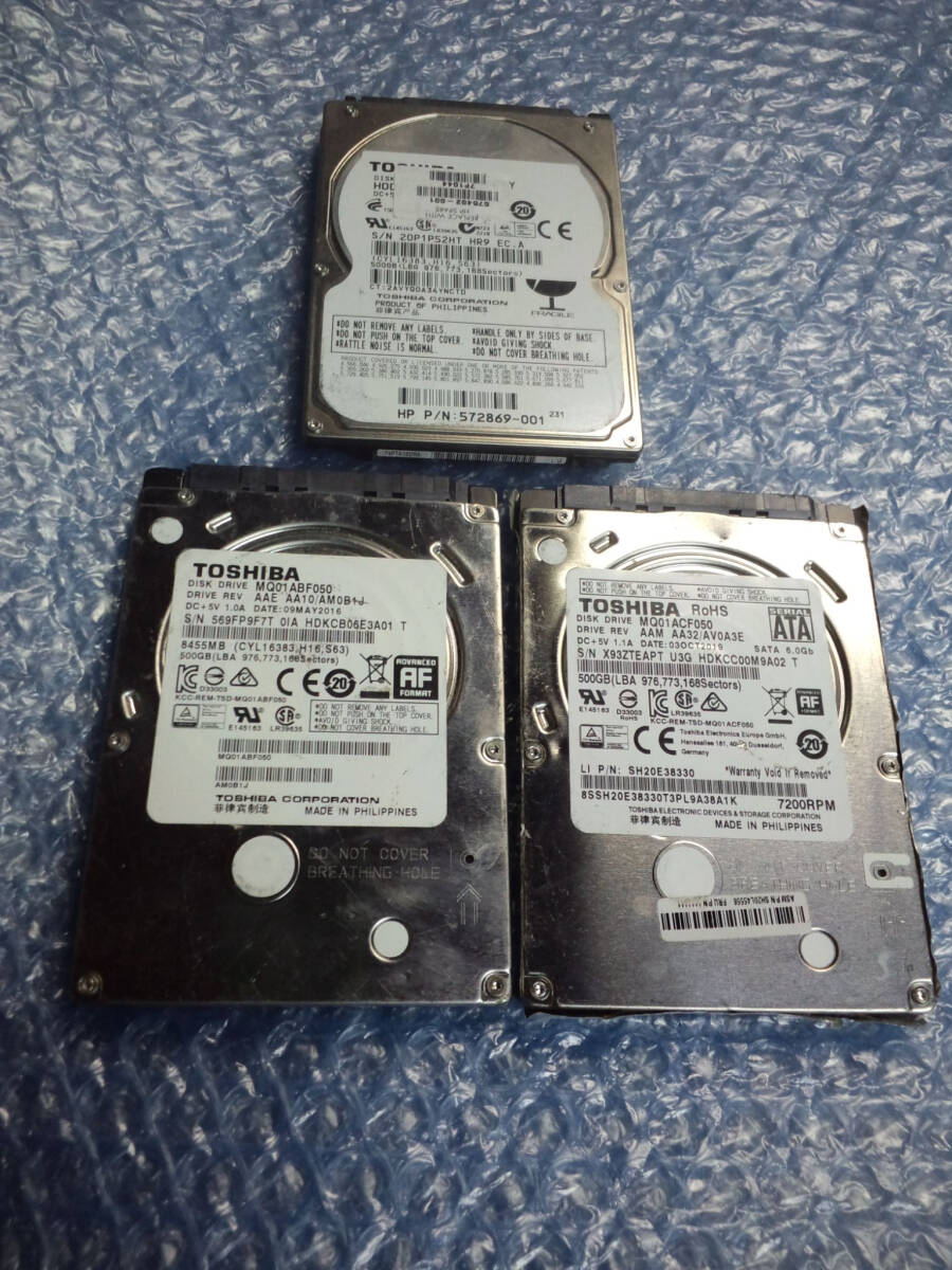 TOSHIBA 東芝 2.5インチ HDD 500GB MQ01ABF050 MQ01ACF050 MK5056GSY まとめて3個セットです。動作確認はCrystalDiskInfoでの確認とします。