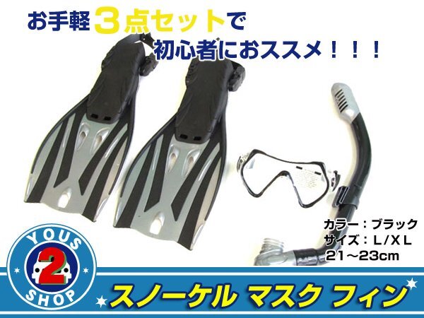 送料無料 スノーケル&マスク&フィンセット ブラック 子供用 L/XL