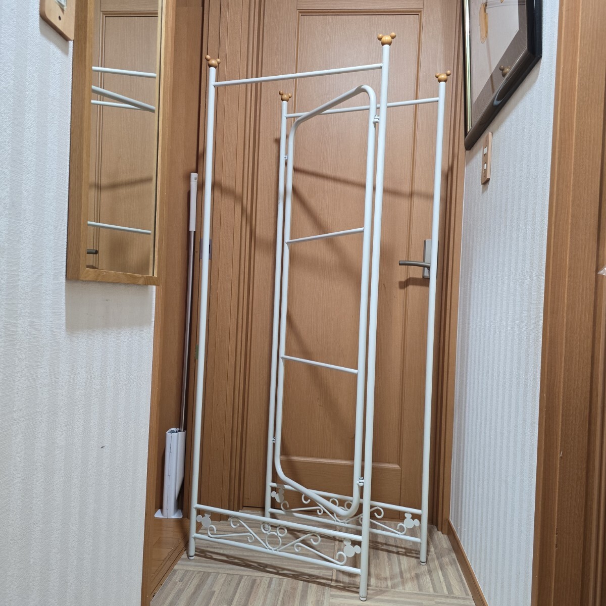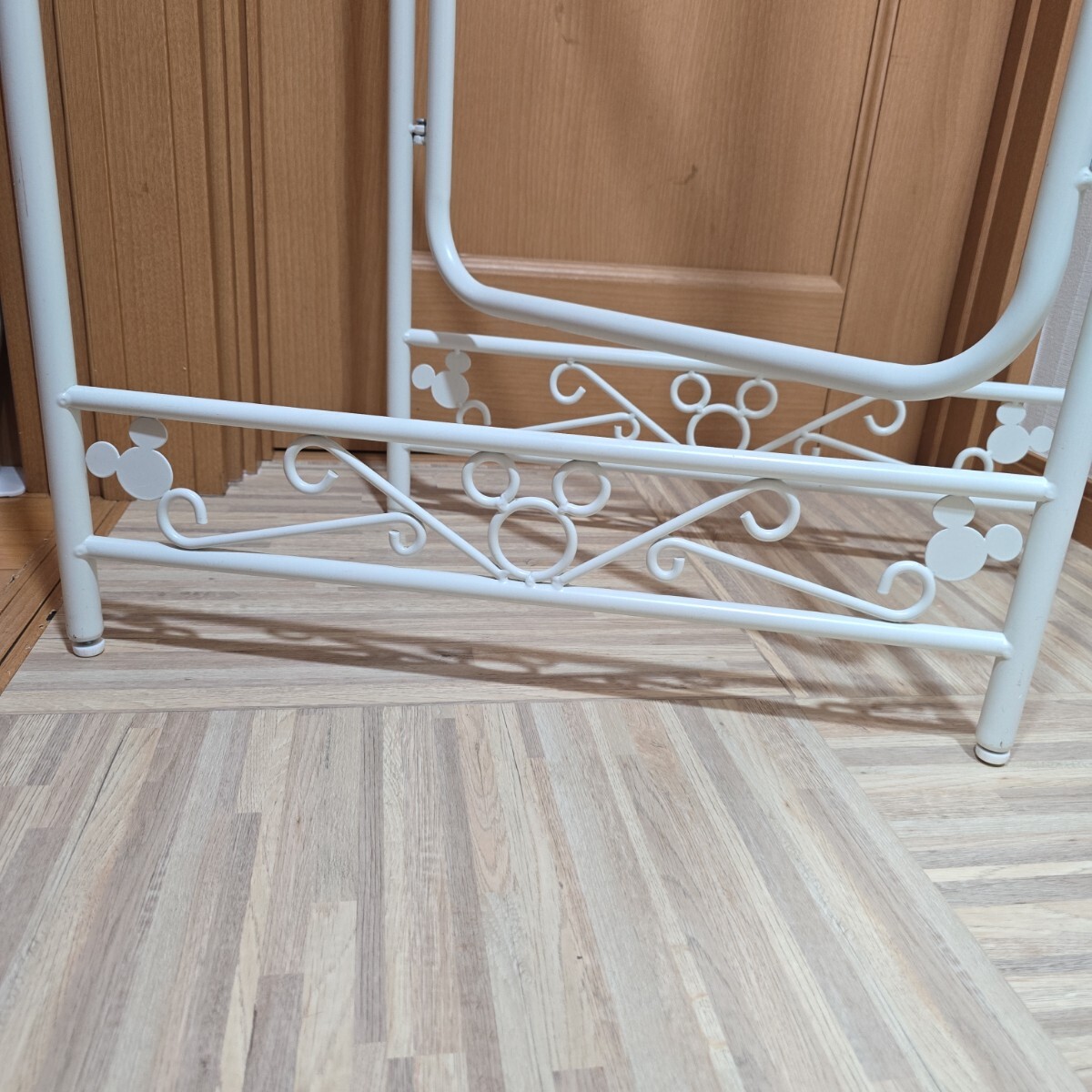 ホワイトの装飾的なデザインのメタルラック、ミッキーマウスのモチーフ付き。