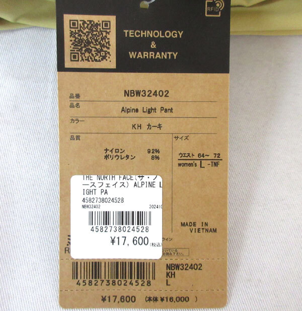 | レディース ノースフェイス アルパインライトロングパンツ(NBW32402) L 17600円相当 | |