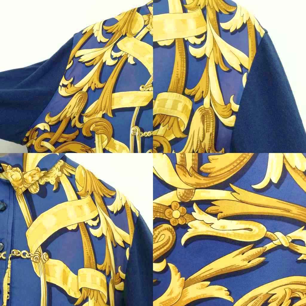 【状態】・サイズ表記がカットされています。 ・全体的にシルク地に色褪せあり。 ・シルク地に糸引き箇所あり。 ・全体的にニット地に毛羽立ちあり。 ・左脇付近のニット地に小穴箇所あり。 (写真参照) ※中古品としての使用感と上記のようなダメージがありますが、通常使用には支障のない商品です。掲載写真や記載内容をご確認いただき、ご理解の上ご購入ください。