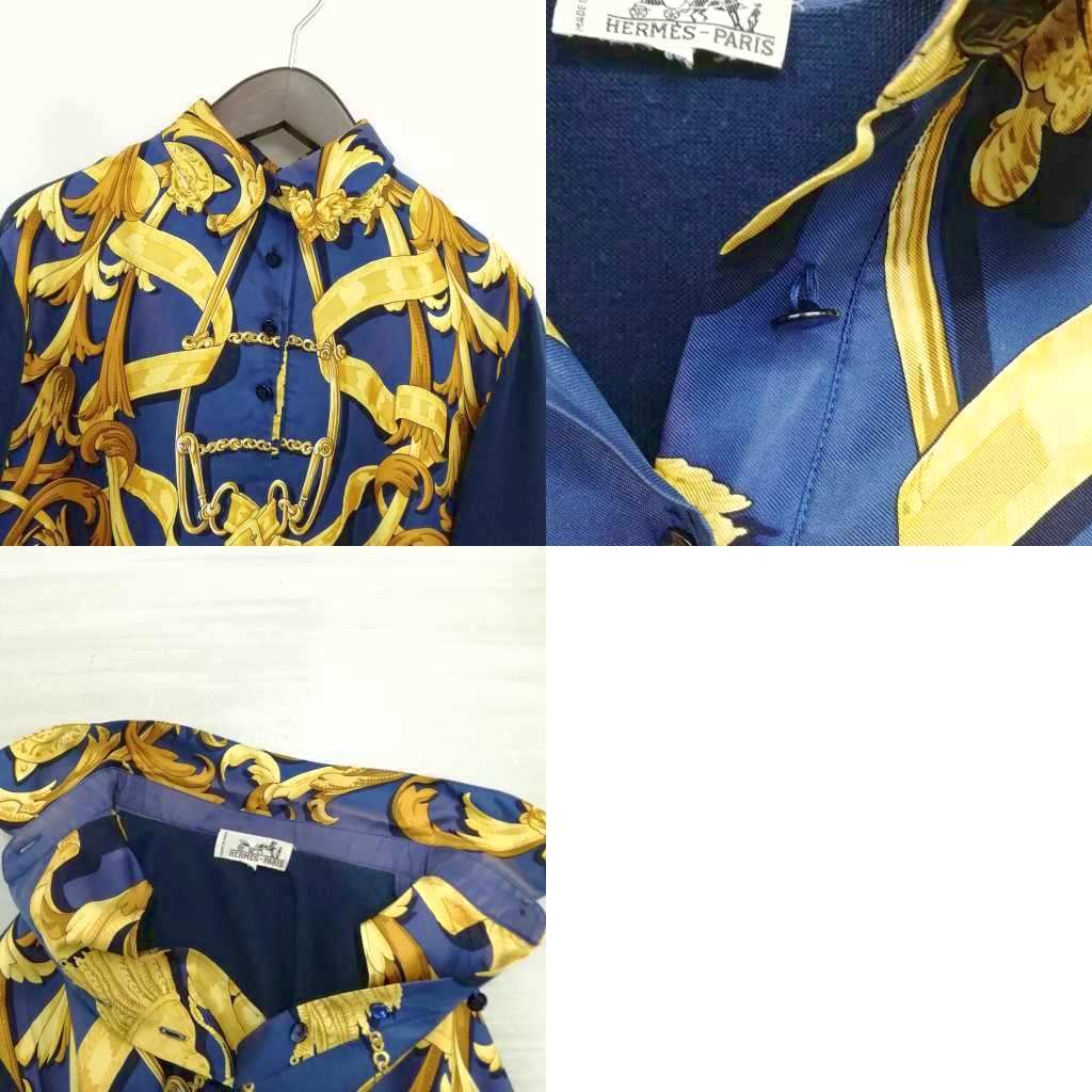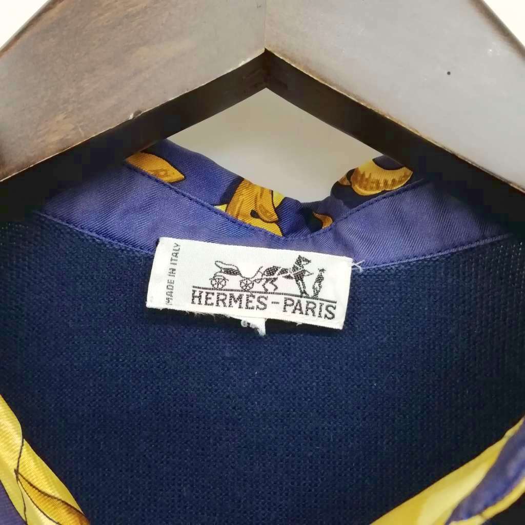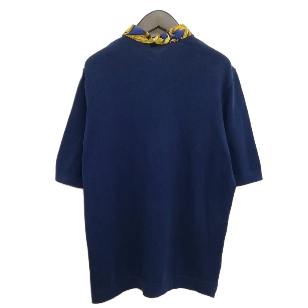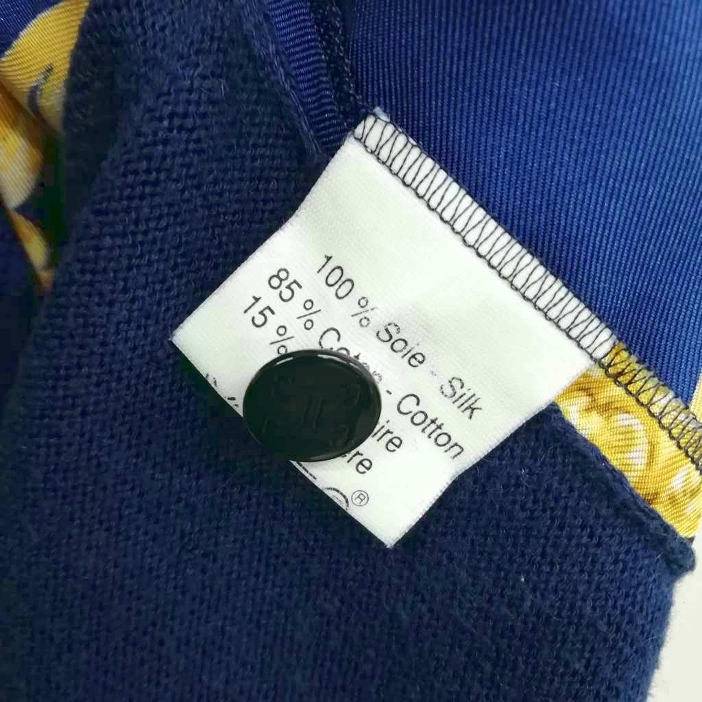 エルメス HERMES シルク ニット 切替 ポロシャツ カットソー 半袖 ネイビー レディース