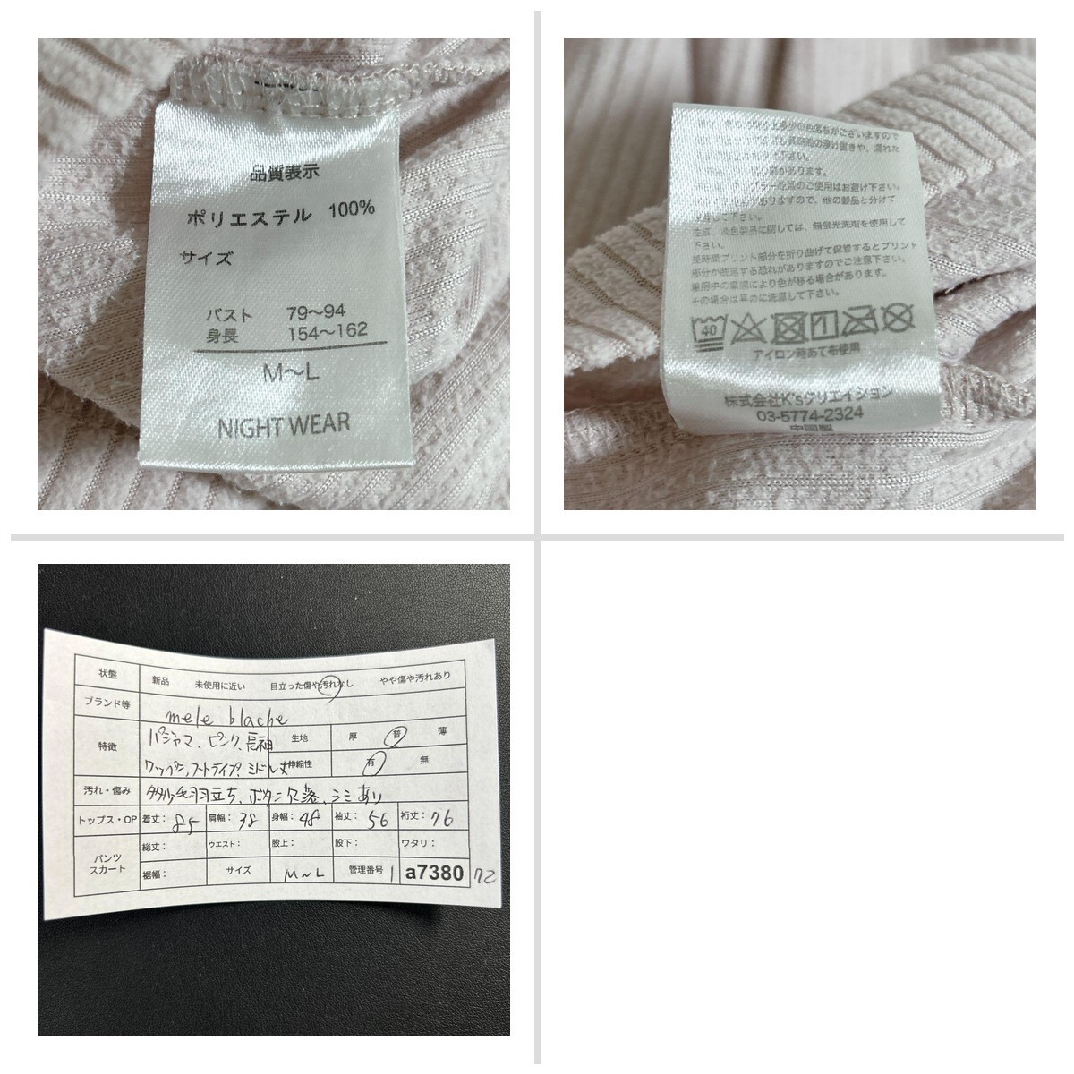 メレブロンシュ ルームウェア パジャマ M〜L ピンク ミドル丈 ワッペン 93F93C