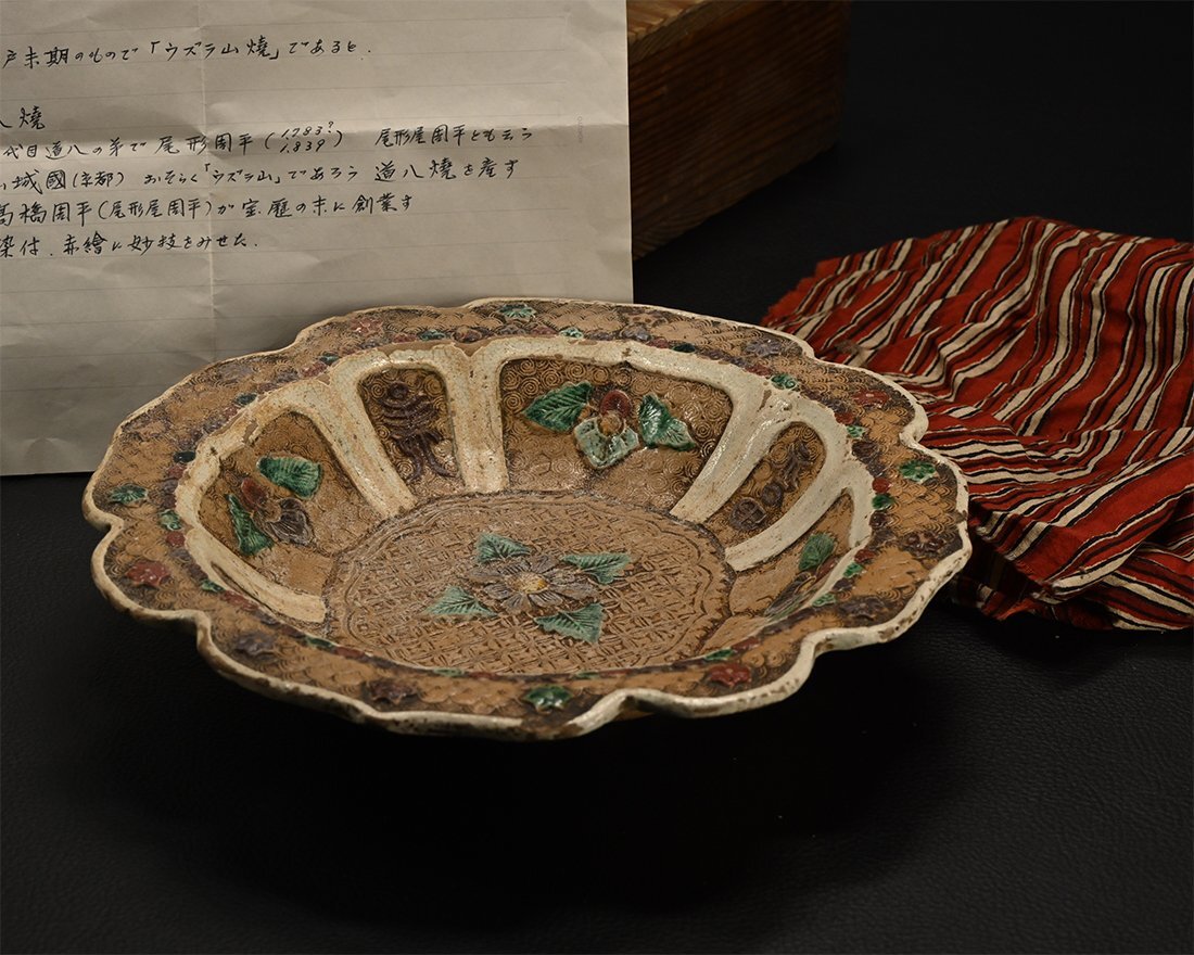 【永】c030【兵庫県の図書館や博物館の館長を歴任された歴史研究家遺族委託品】江戸末期 道八焼鶉山焼 道八尾形周平 赤絵皿 岩熊家旧蔵