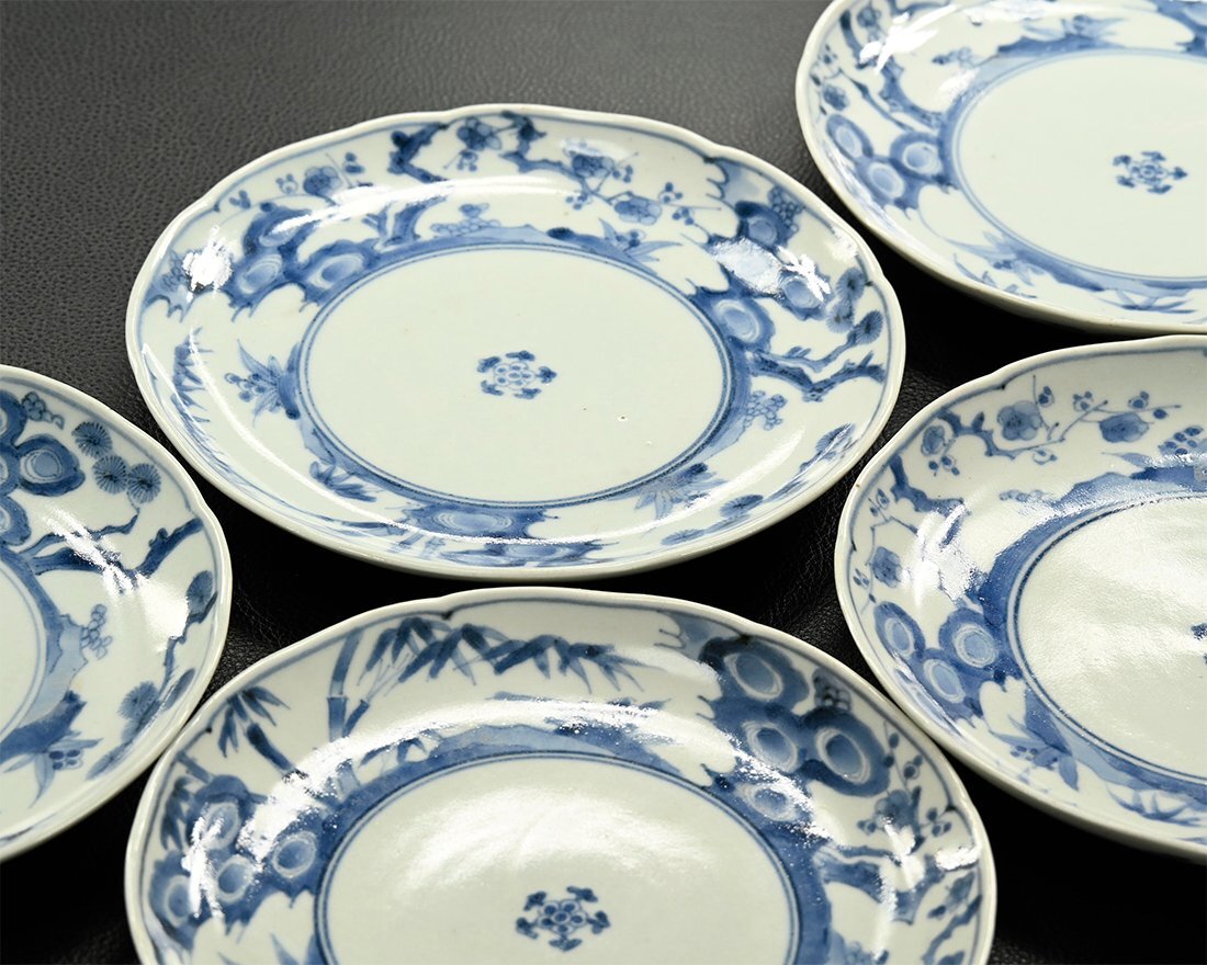 【永】d362【兵庫県の図書館や博物館の館長を歴任された歴史研究家遺族委託品】江戸時代 古伊万里 染付松竹梅文皿 5枚