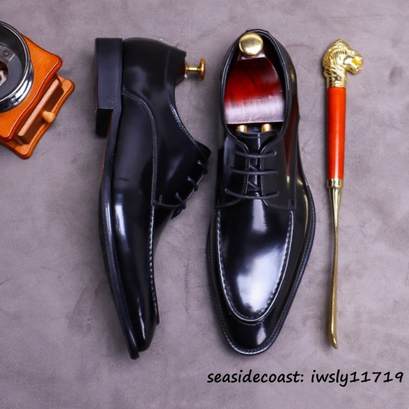 最高級★定価9万 ビジネスシューズ メンズ 本革 レザーシューズ 上質牛革 フォーマル 紳士靴 ヴィンテージ職人手作り 革靴 ブラック 26.0cm