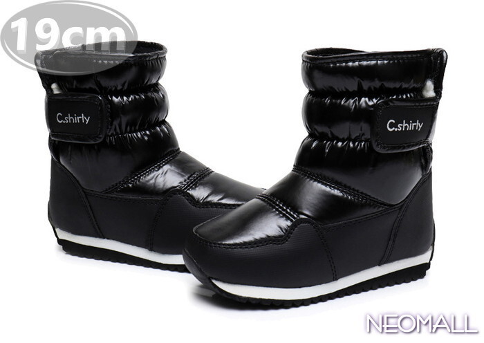 キッズ スノーシューズ 【954】 19.0cm ブラック ムートンブーツ スニーカー ウィンターブーツ 裏起毛 防水 防寒 防滑 冬用靴 綿靴