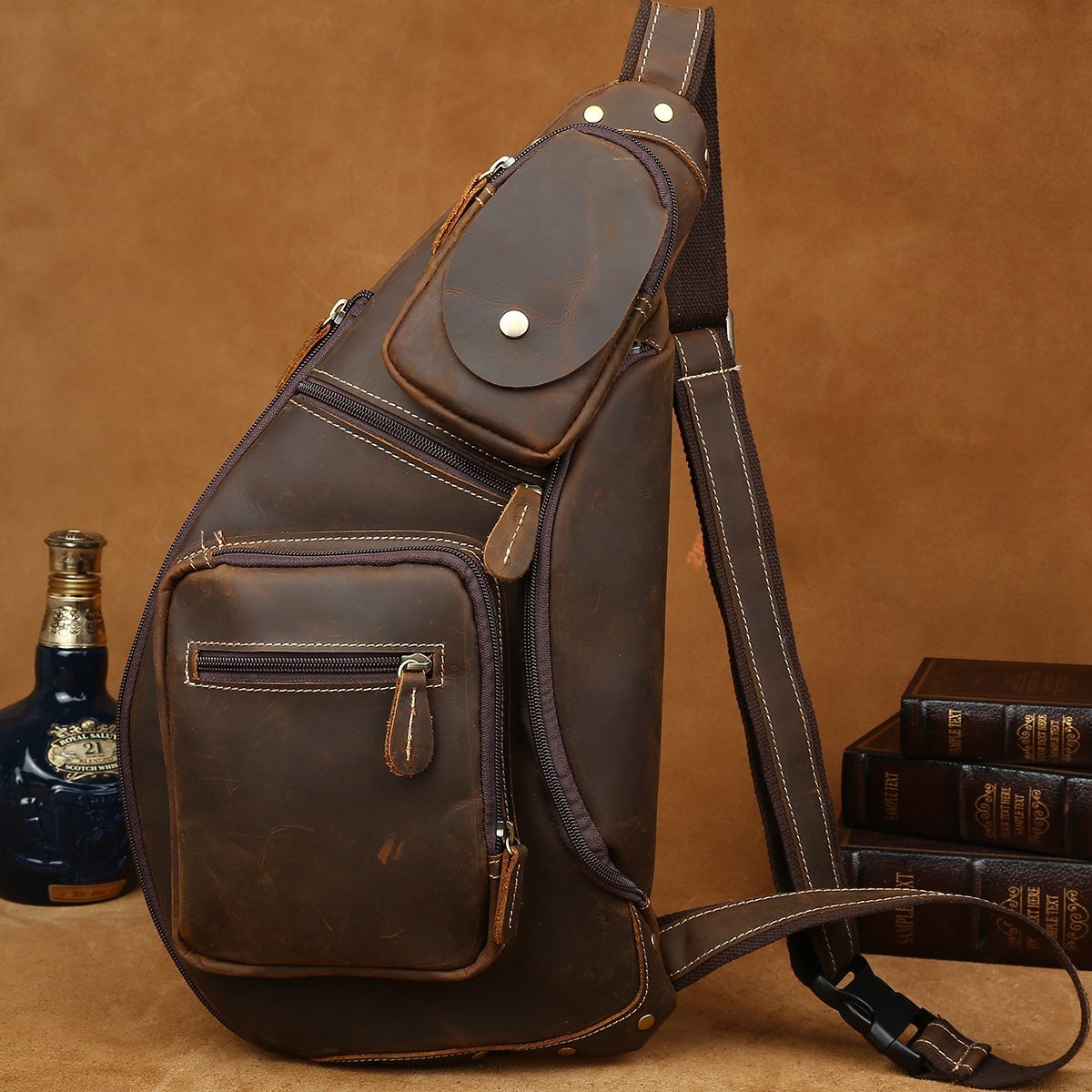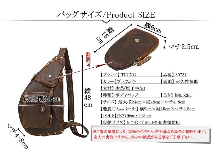TIDING アンティーク 厚手牛革 本革 ボディバッグ メッセンジャーバッグ 斜め掛け ワンショルダーバッグ マチ拡張 iPad対応 自転車 鞄 潮牛