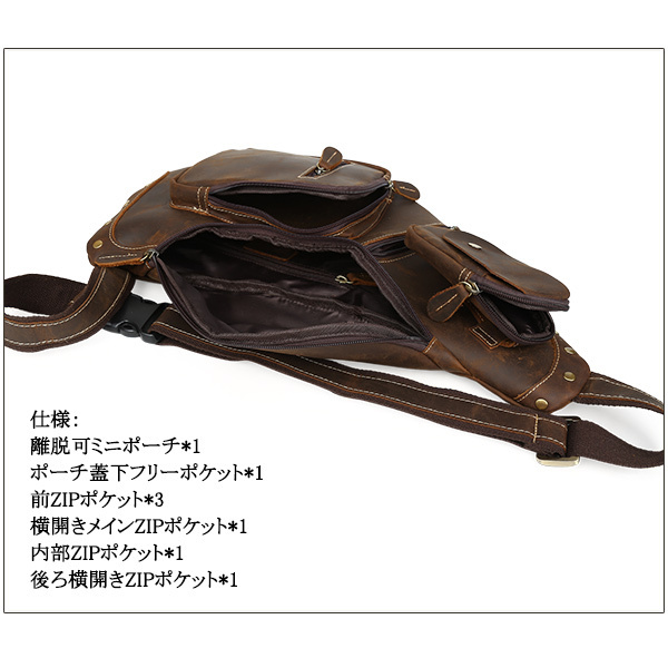 ●厳選された耐久性抜群な天然厚手牛革素材を採用、素材のナチュラル感を保つ加工を施し、独特復古調の泥色のようなカラーが現出しています。優れた職人の技で丁寧に作り、ちょっとやそっとじゃ壊れません。