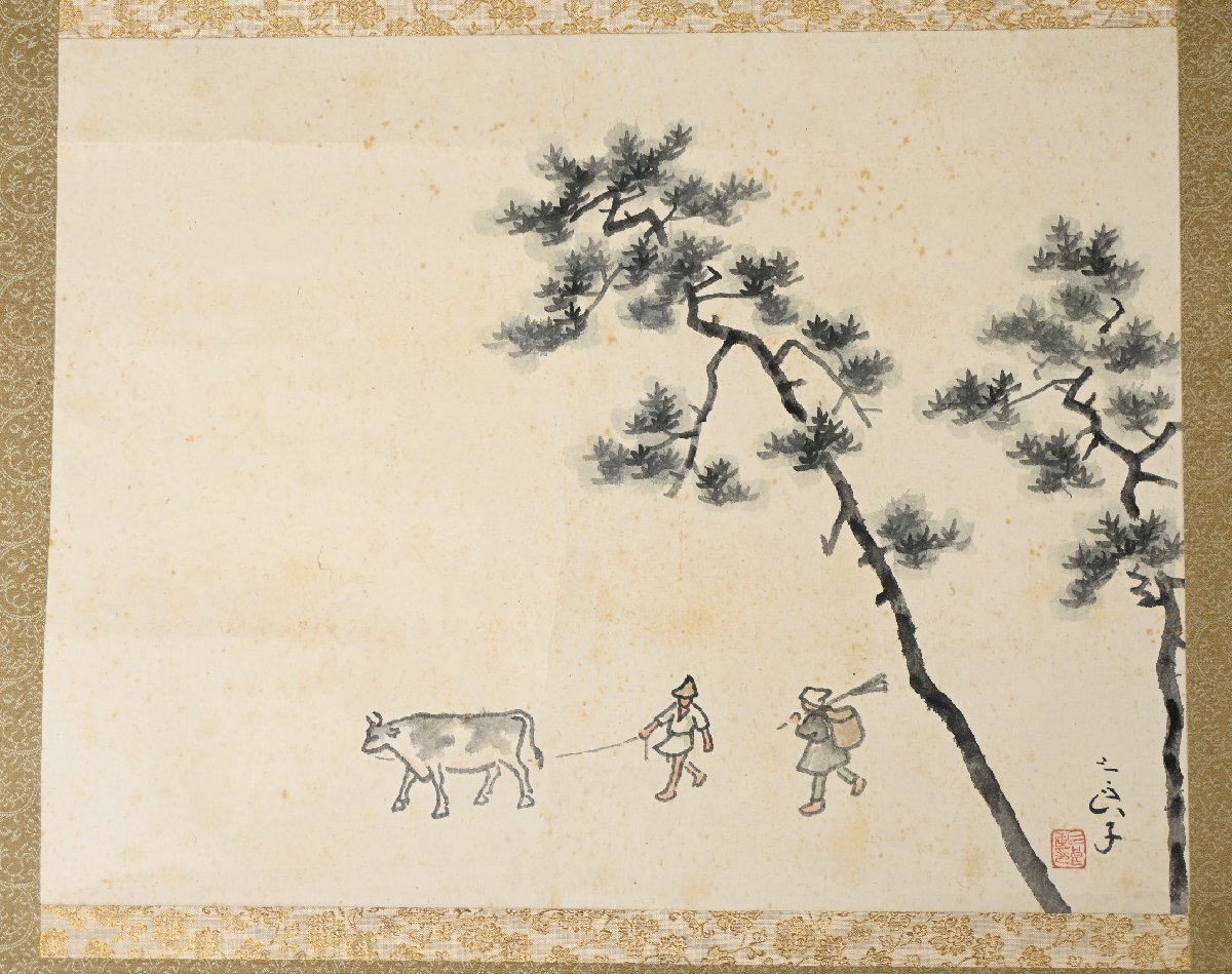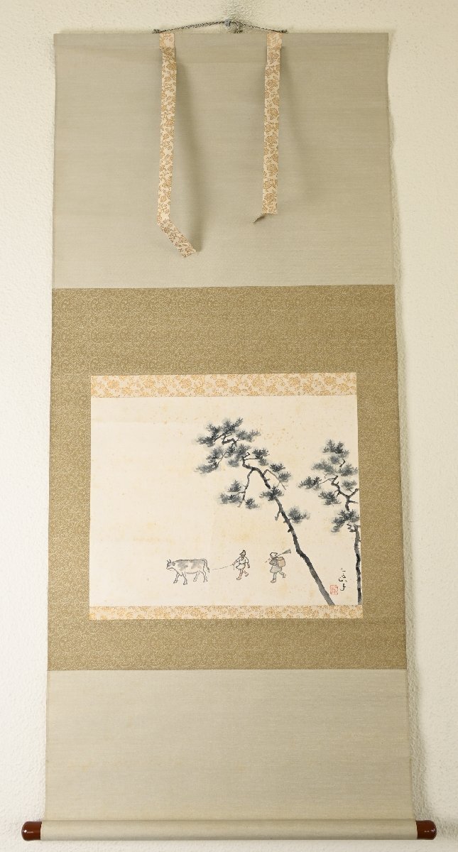 【真作】『酒井三良子』院展文部大臣賞受賞「牛」紙本軸装 掛軸 書画 日本画