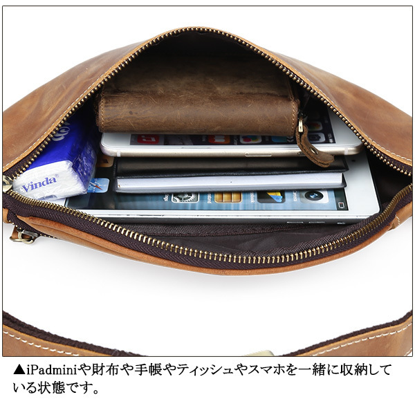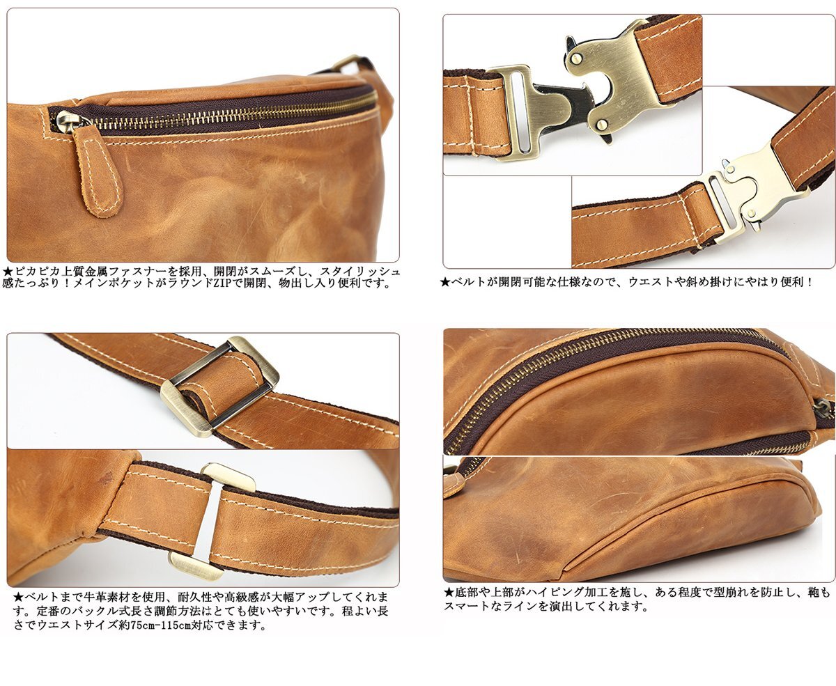 コメント: 今季新作の牛革ウエストバッグを紹介させていただきます。厳選された贅沢な輸入天然牛革素材を使用します。体に馴染むソフト質感の天然牛革素材の上に、鞄は三日月形のデザインを採用、スマートの線条がもっとお体にフィットします。背負う感が向上し、ファックション性もアップ!本体はただ0.4kgの軽量さ、いつでも使い放題!ベルトの調節により、ウエスト掛けや肩・斜め掛けも対応可能、使うシーンやご気分に合わせてウエストバッグやボディバッグ・ワンショルダーバッグの間に変換自由自在!ペットボトル、折り畳み傘、デジカメ、スマホ、財布などはもちろん、驚き程ipadminiも収納可能、実用性抜群で自転車や日常生活や小旅行などに大活躍な一品です。