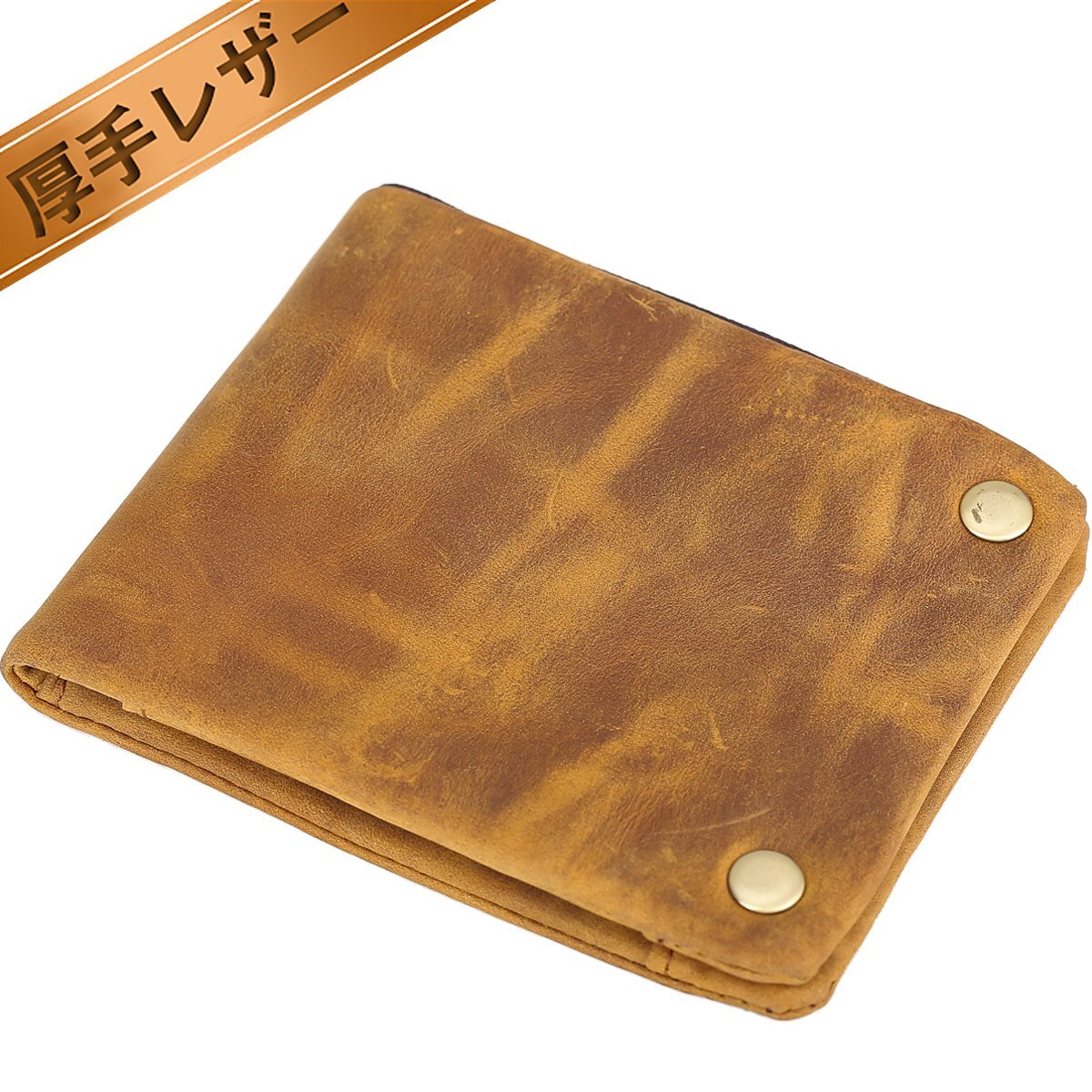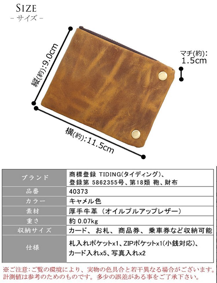 TIDING 手作り ビンテージ 本革 メンズ 二つ折り財布 小銭入れあり 経年変化 プルアップレザー 牛革 ウォレット 革財布 キャメル 潮牛