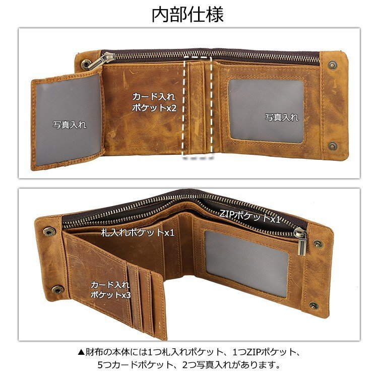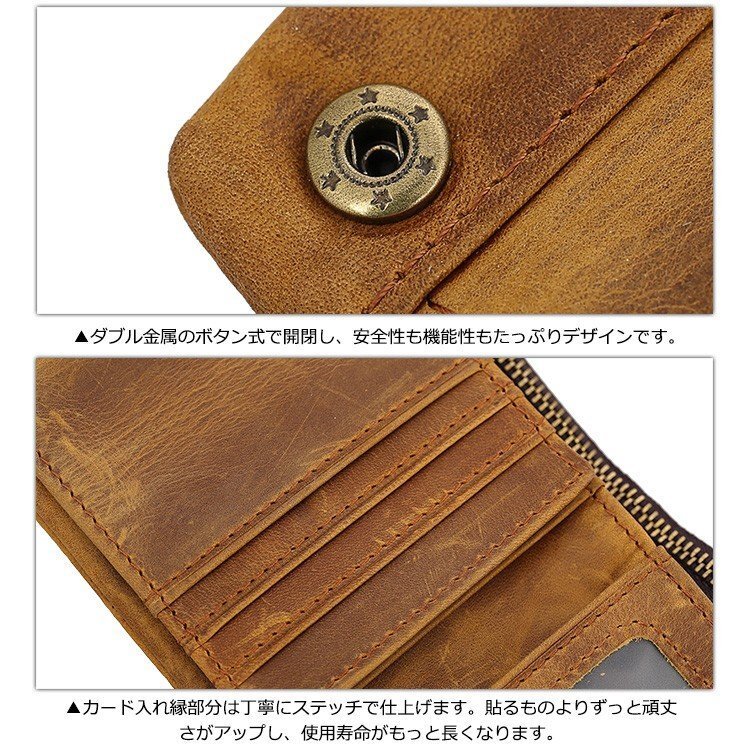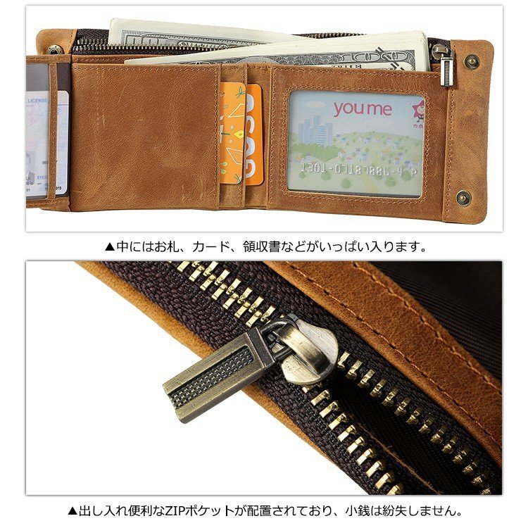 便利と容量を両立で二つ折り。すぐにカードを取り出せの収納上手。カード入れ総計五つあります。実用性を強化するために、その上で写真も入れるようにデザインされました写真兼カード入れが二つ、その中の一つは活動ブロックの背後に隠しでおり大事な写真や証明にぴったり。これだけでなく、総計二つの札入れの中に一つ がファスナー付き ますので、小銭がありましたら、そこに入れてもよろしいです。その麗しいファスナーにはも一つの機能が付き、引き手の取替えです。引き手が取替え可能なデザインなのでご気分のままに色んな引き手と組み合うことが可能!