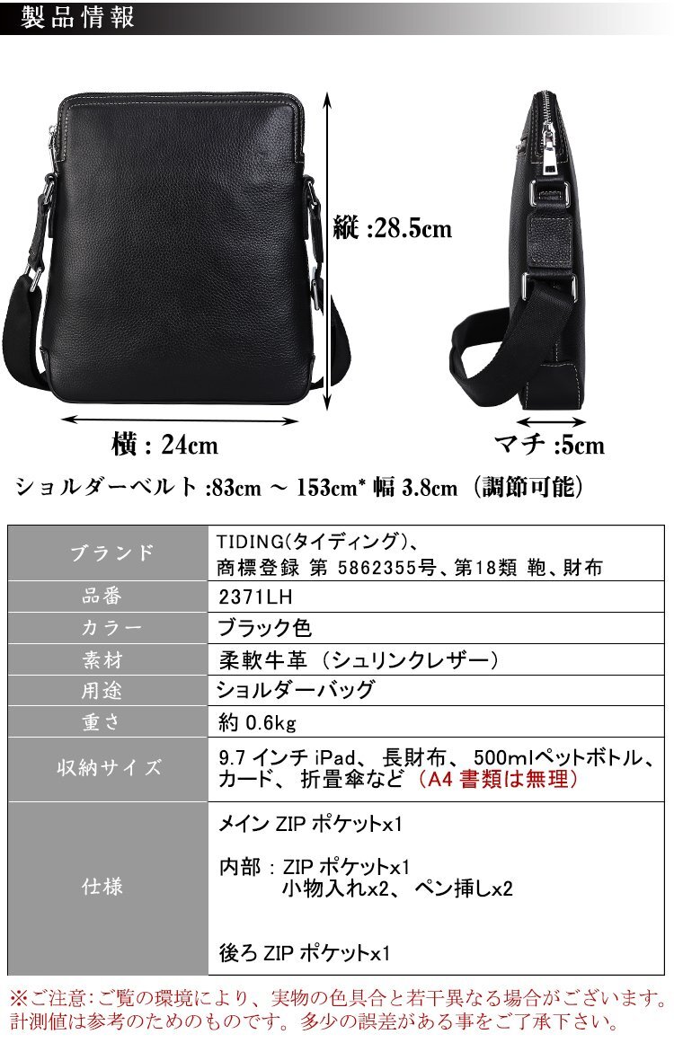 TIDING ショルダーバッグ メンズ 本革 縦型 ブラック 潮牛
