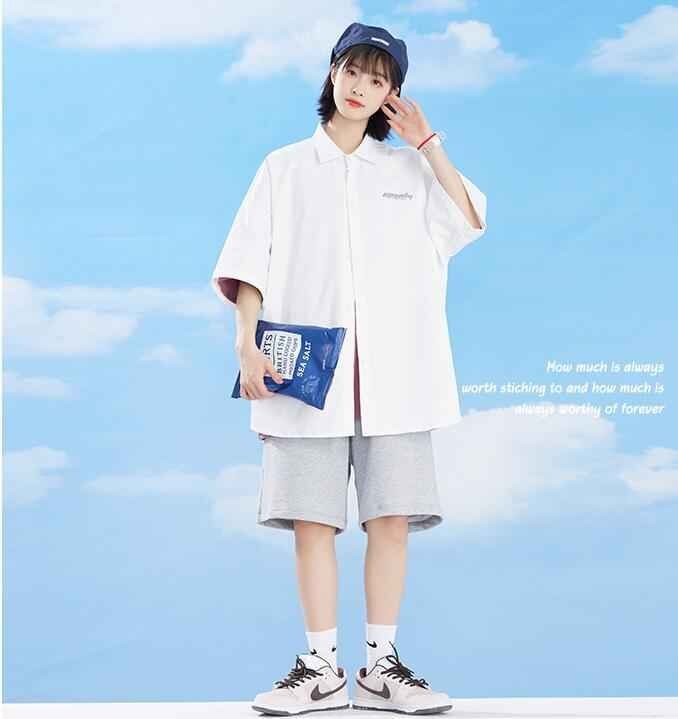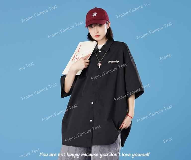 韓国風 レディース 半袖シャツ 新しい夏 カジュアル ファッション半袖シャツ M ブラック