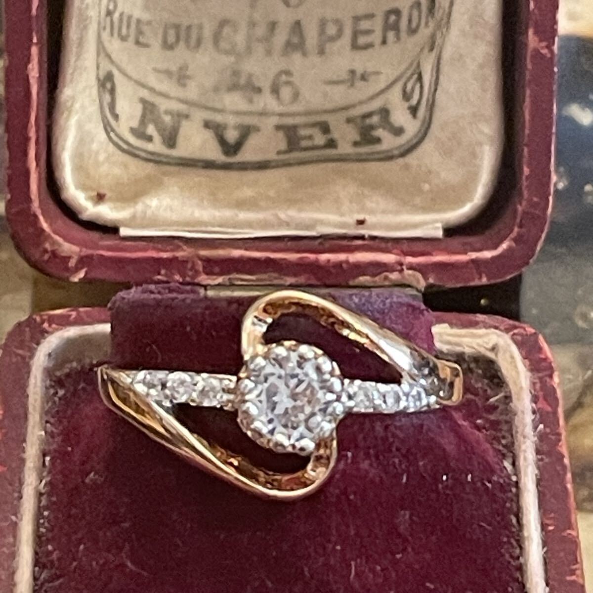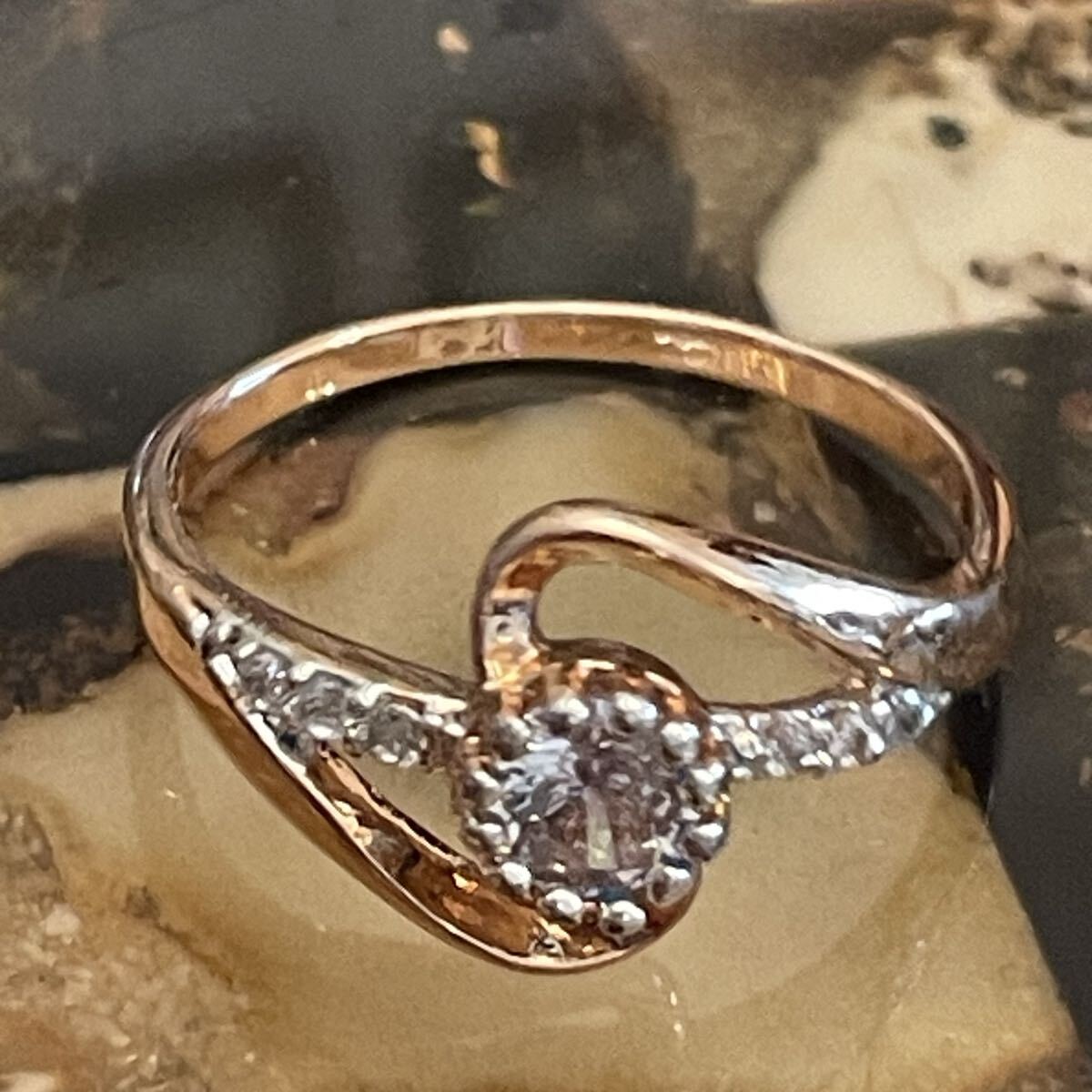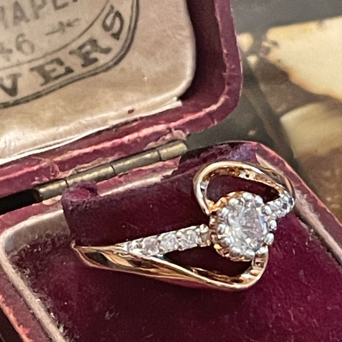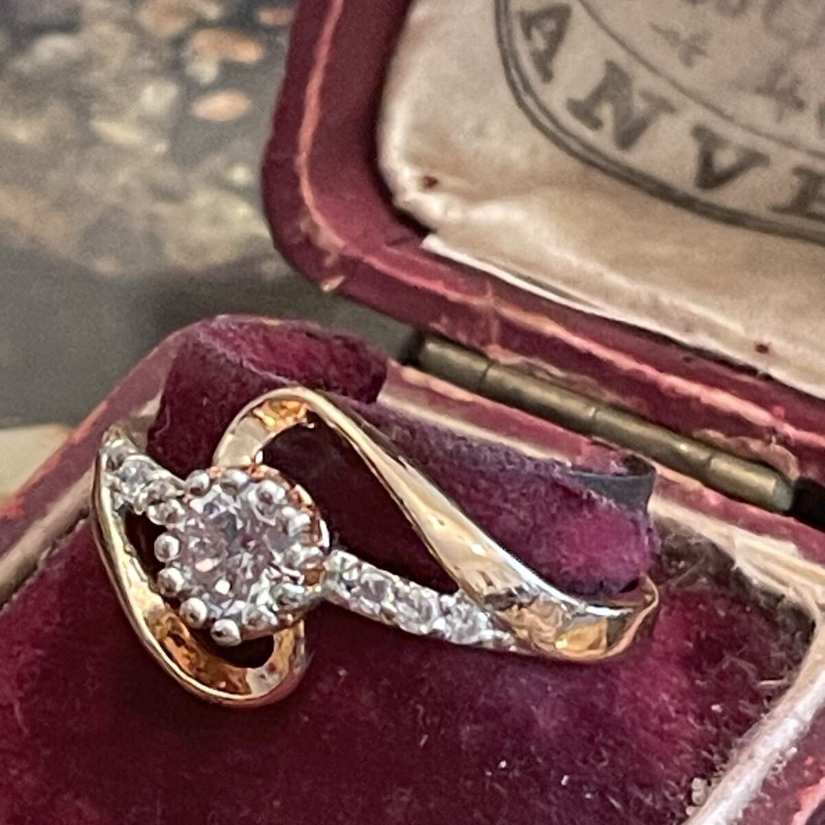 ヴィンテージ 英国 イギリス ピンクゴールド 指輪 リング 18号 ダイヤ風 蚤の市 ブロカント ビンテージ アンティーク