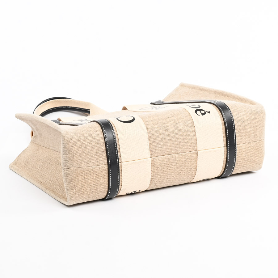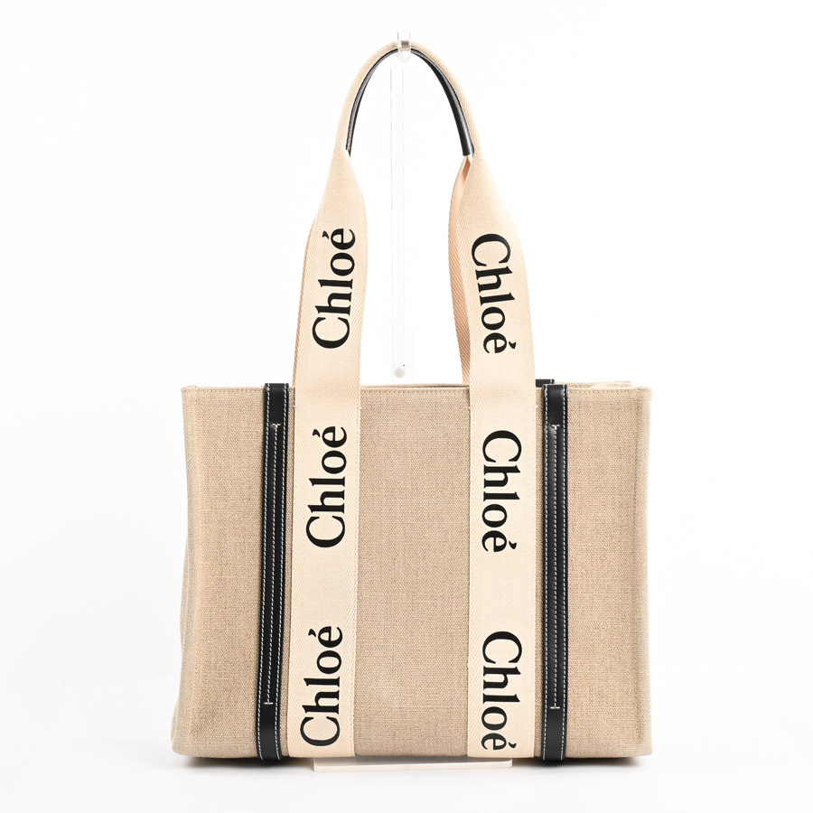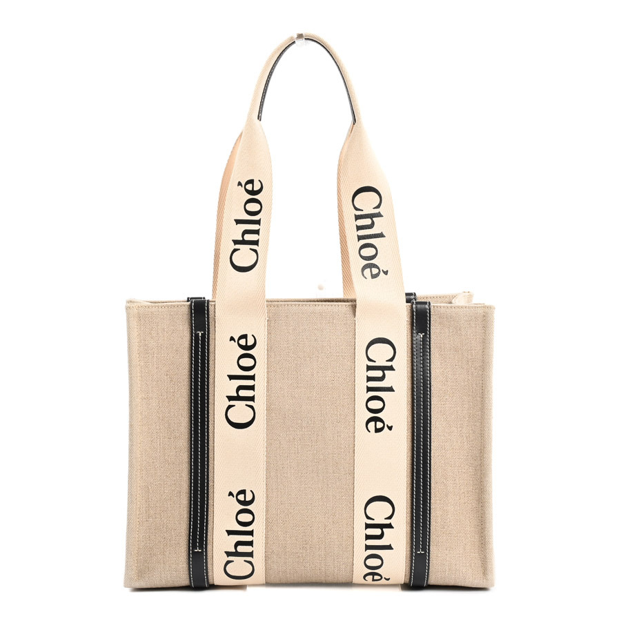 クロエ WOODYミディアムトートバッグ ハンドバッグ ベージュ/ブラック レディース 中古AB品