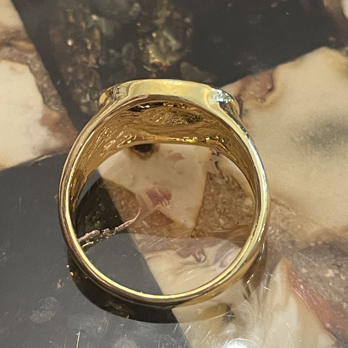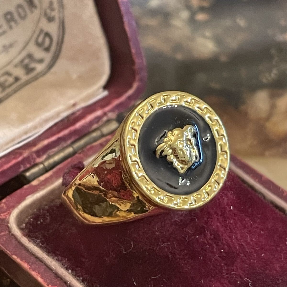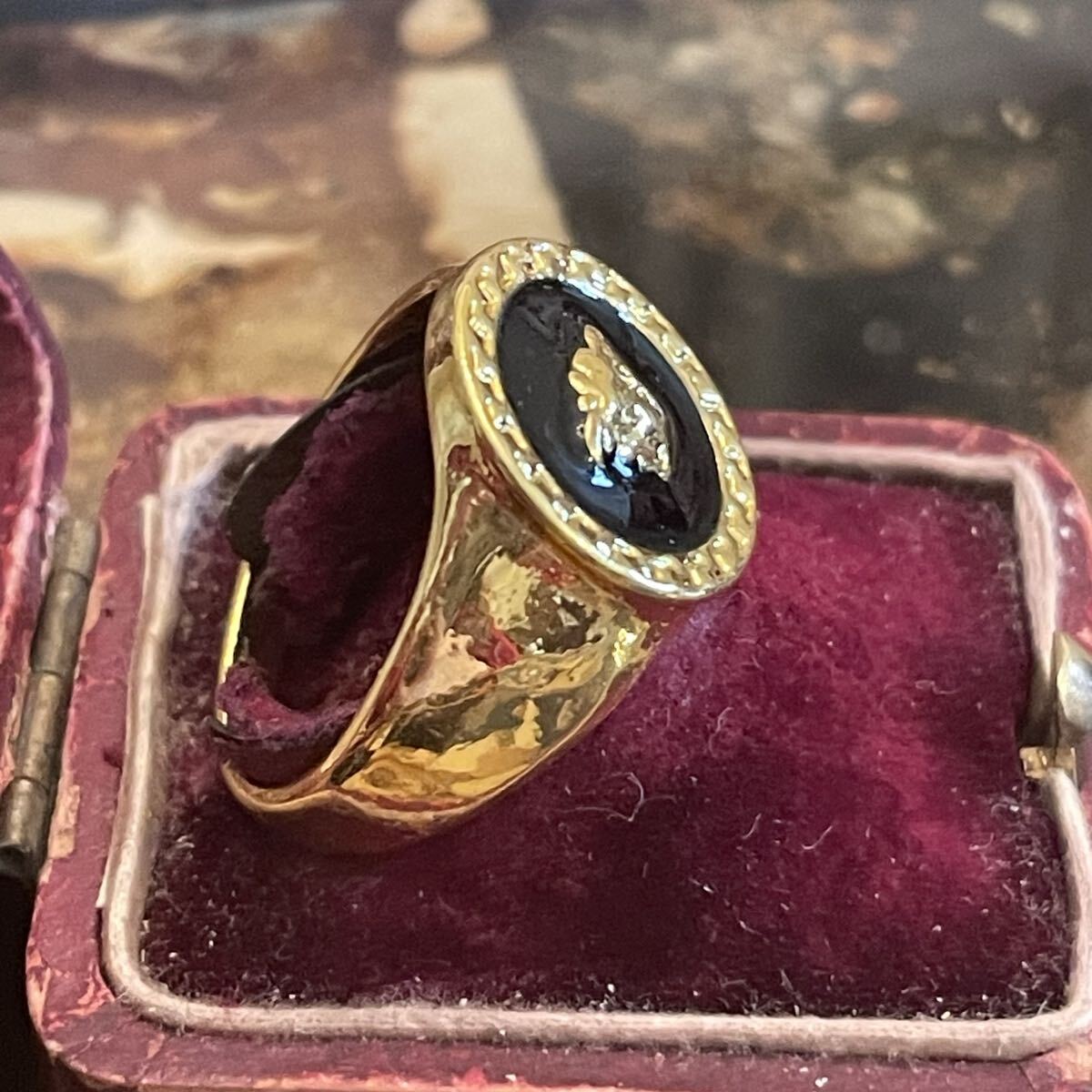 英国 イギリス ヴィンテージ インタリオリング 黒 金色 指輪 リング 15号 ブラック ゴールド 蚤の市 ブロカント ビンテージ アンティーク