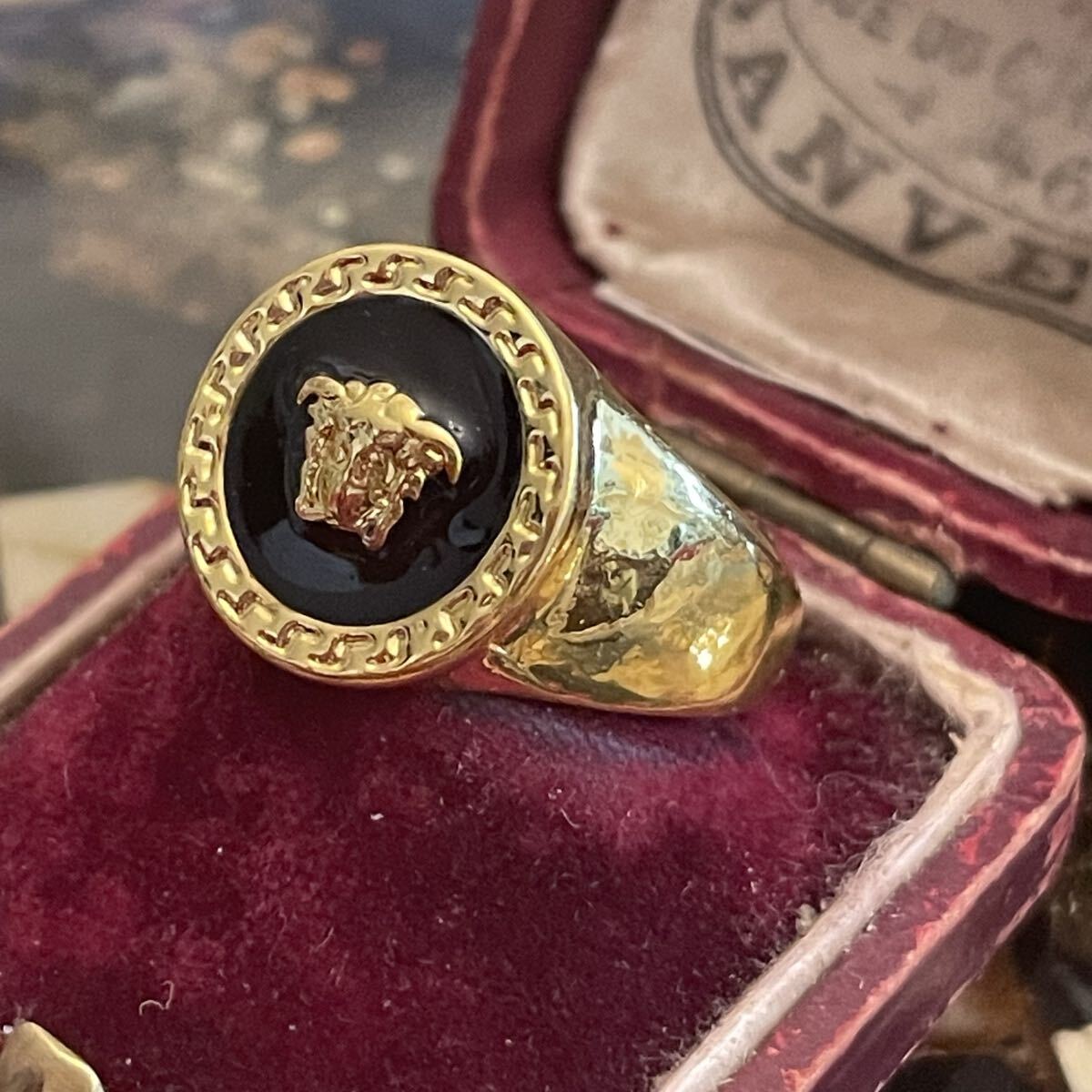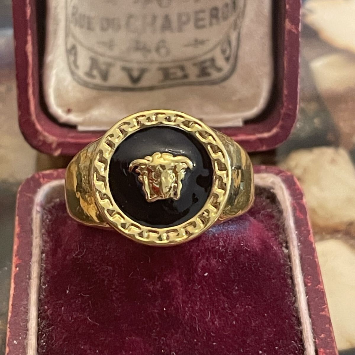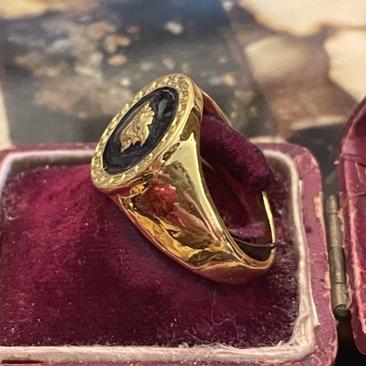 英国 イギリス ヴィンテージ インタリオリング 黒 金色 指輪 リング 15号 ブラック ゴールド 蚤の市 ブロカント ビンテージ アンティーク