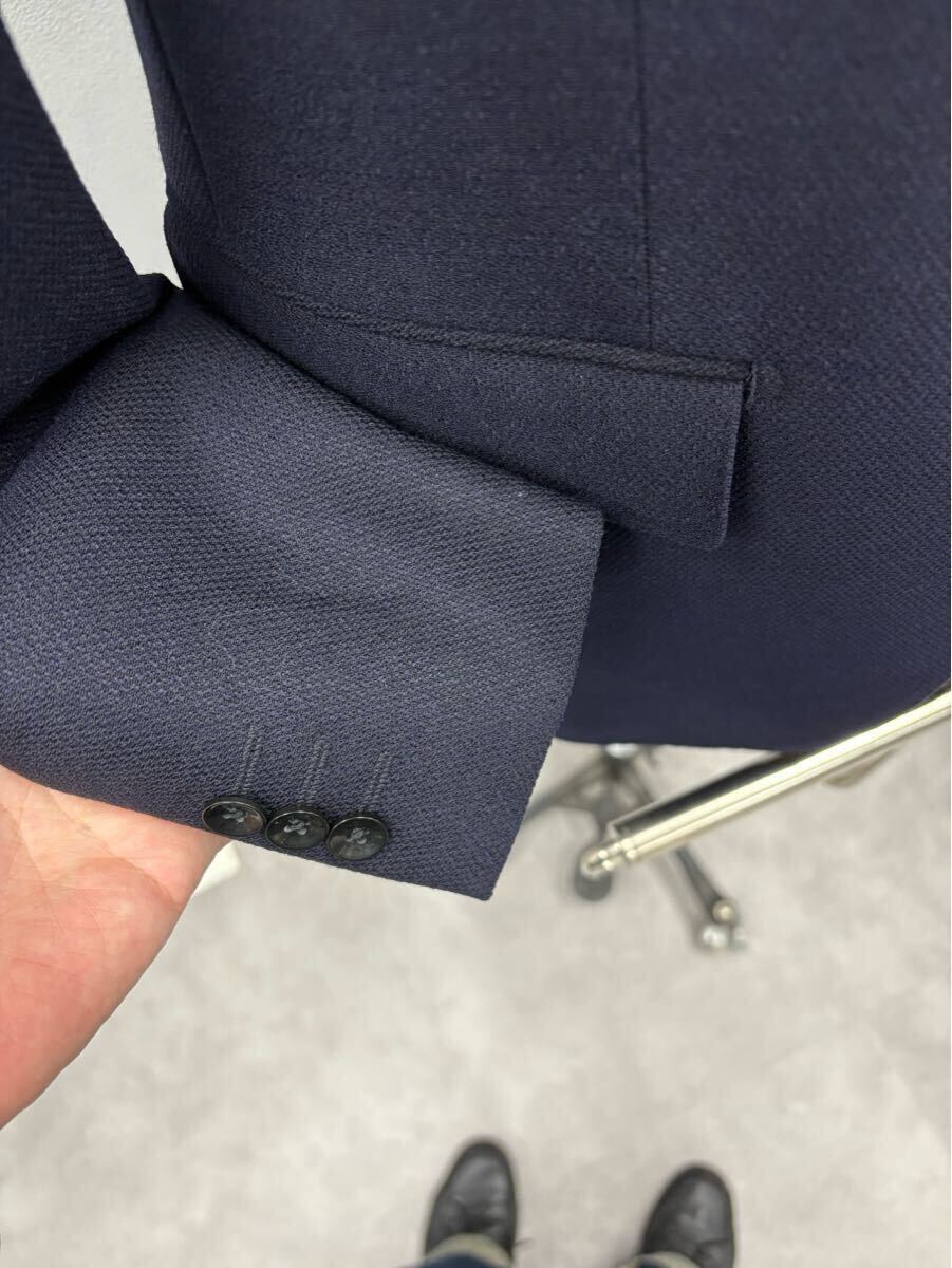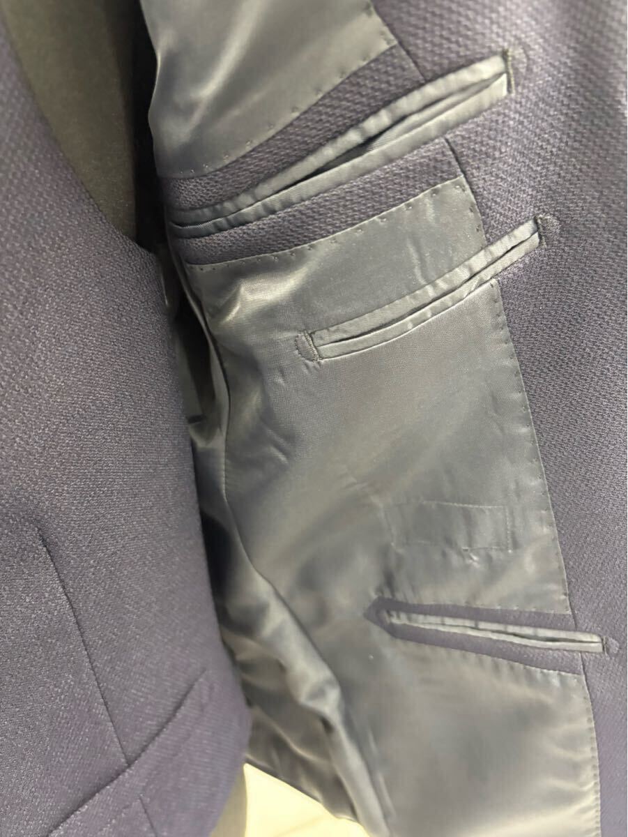 新品スーツ 訳あって世に出れなかったダークネイビーストレッチ2Pスーツ 秋冬春3シーズン用 A5サイズ相当