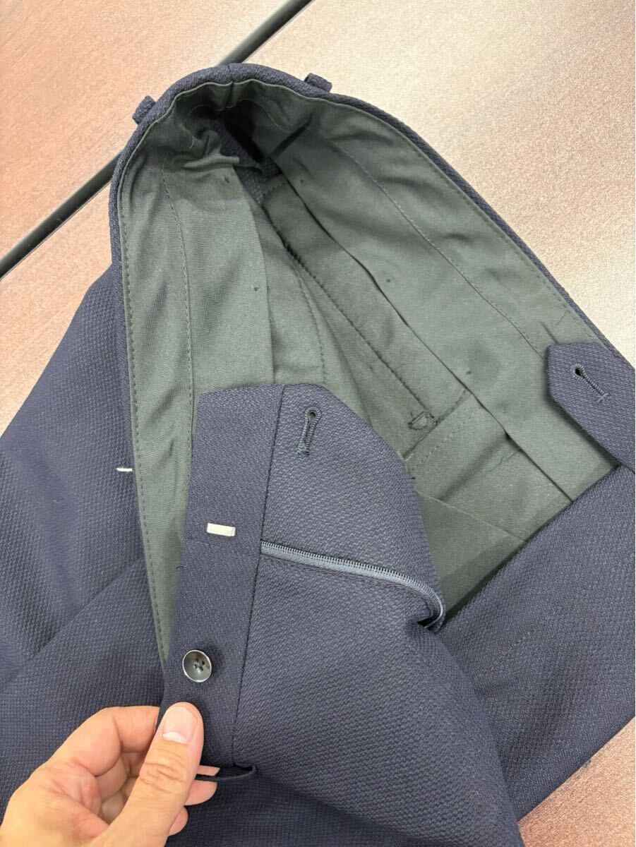 新品未使用で着用が可能なスーツにも関わらずそのまま廃棄となることも忍びないので私が引き取りまして