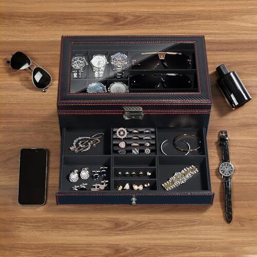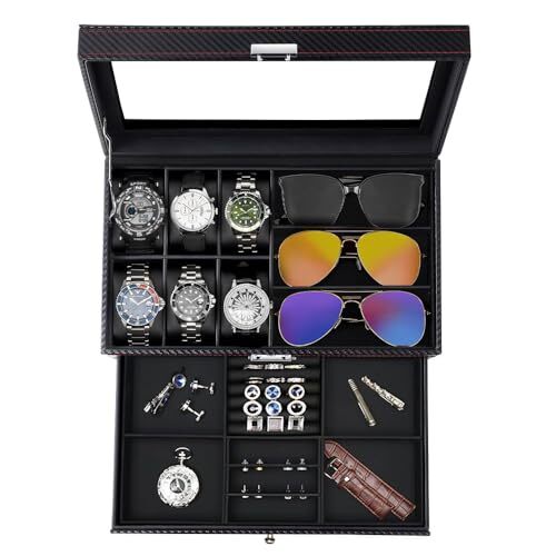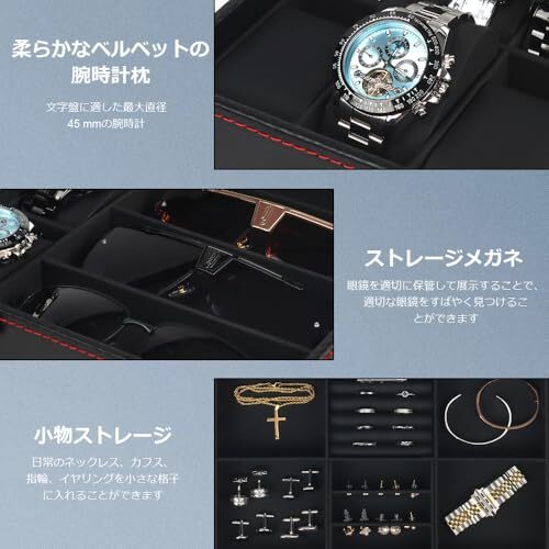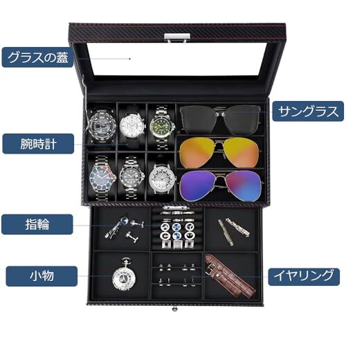 【サイズ】20cm奥行き x 33cm幅 x 13cm高さ、この腕時計ケースの蓋は高級感があふれています。※すべての時計に対応してはいませんので、発注前、必ずサイズをご確認いただきます。