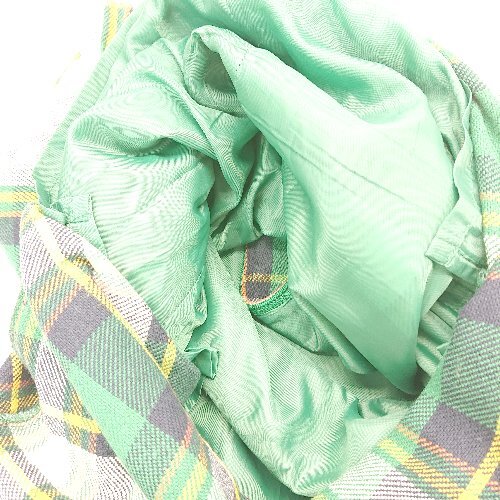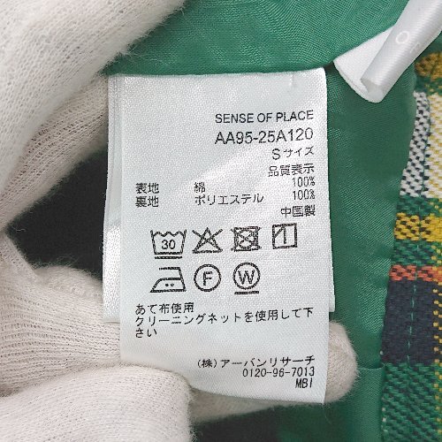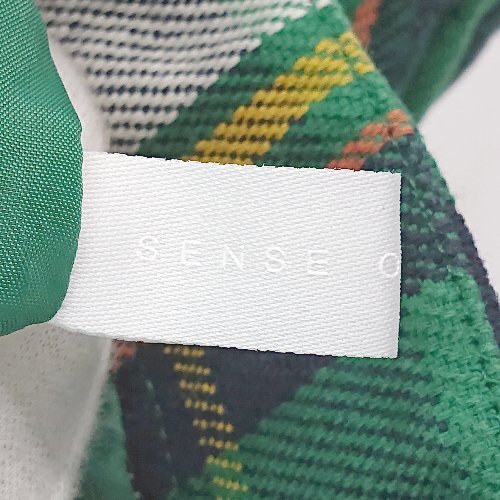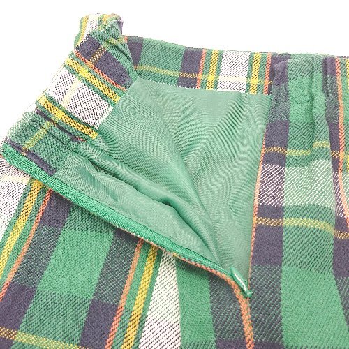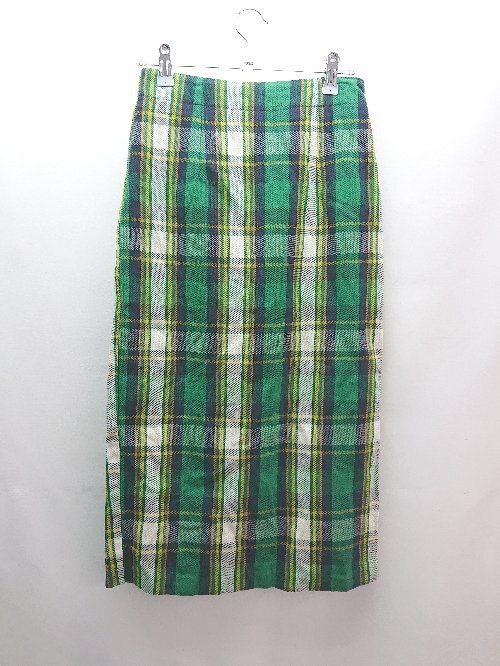 ◇ SENSE OF PLACE バックジップ ウエストゴム チェック柄 裏地 膝丈 タイト スカート サイズS グリーン レディース E