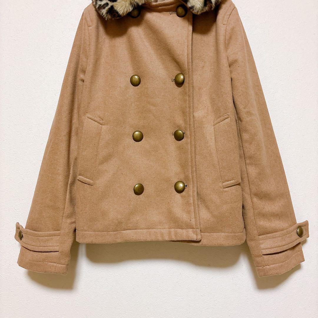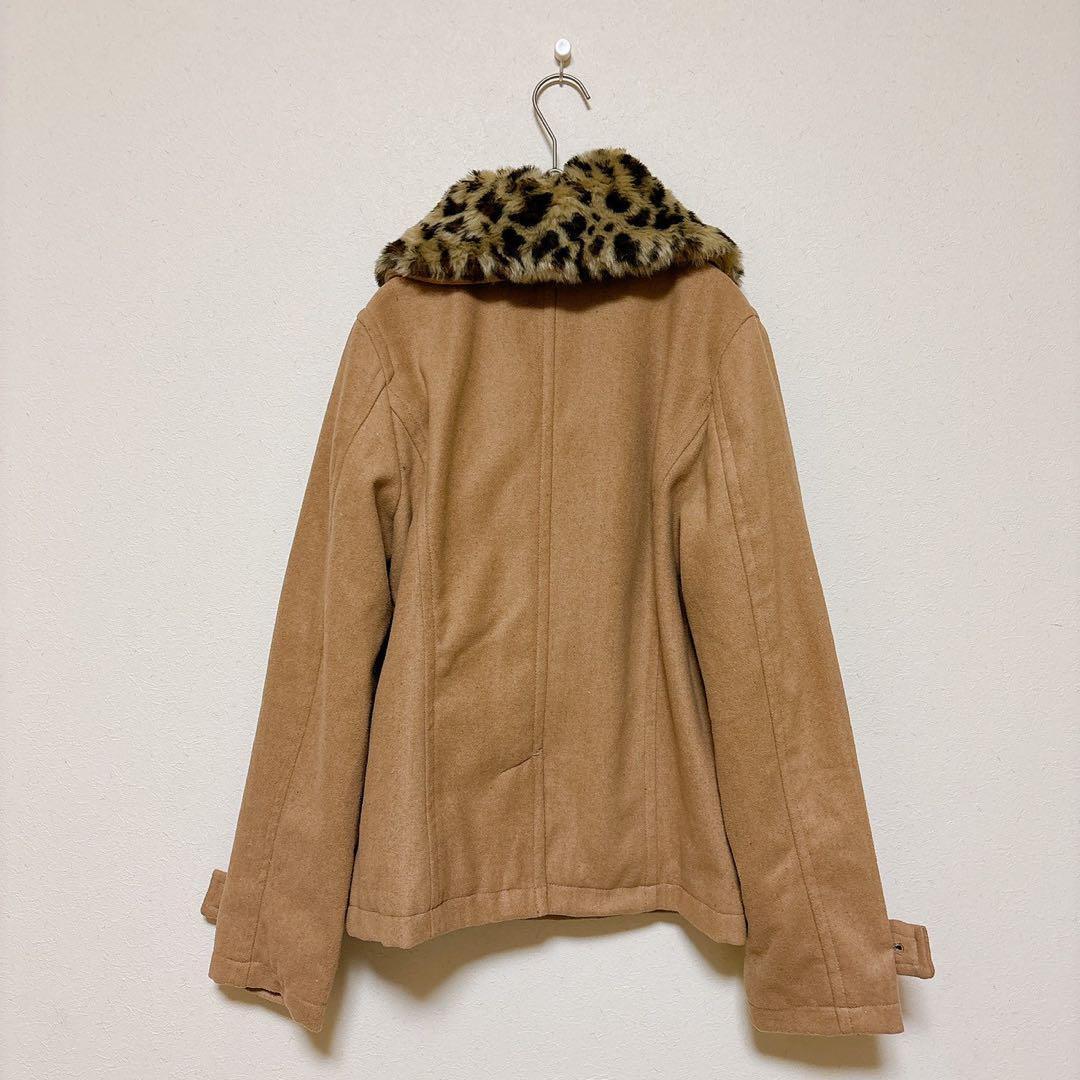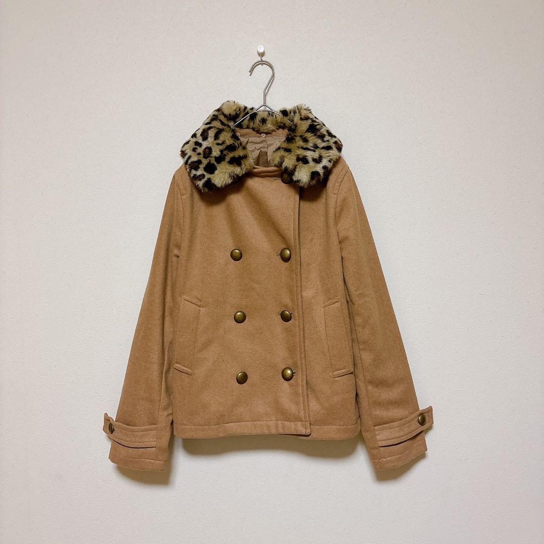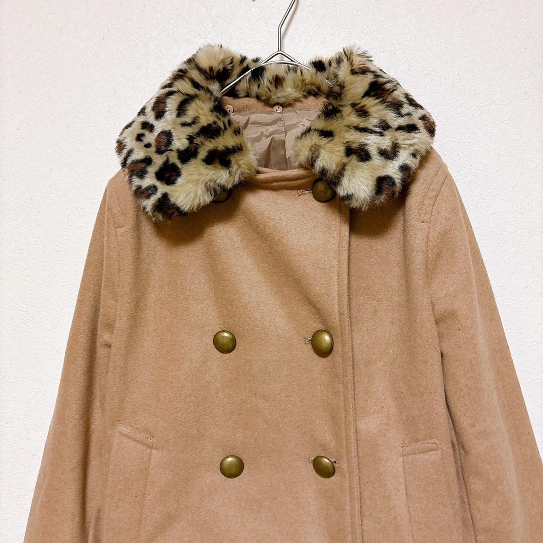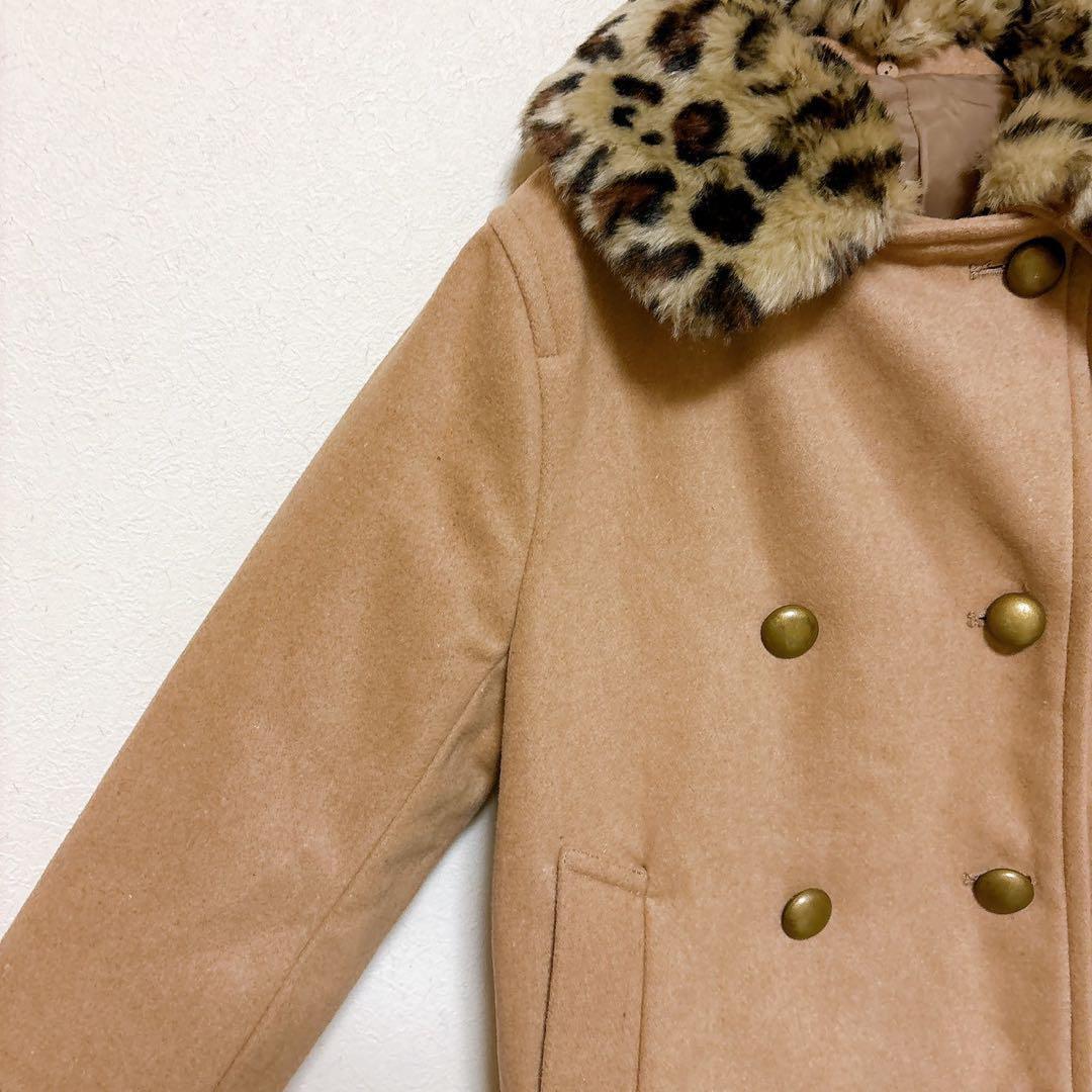 レオパード柄のファー襟がアクセントになっており、シンプルながら華やかさをプラスしてくれる一枚。