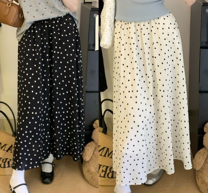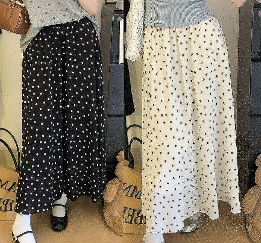 ロングスカート フレアスカート ドット柄 シンプル カジュアル お出かけ レディース フリー ブラック