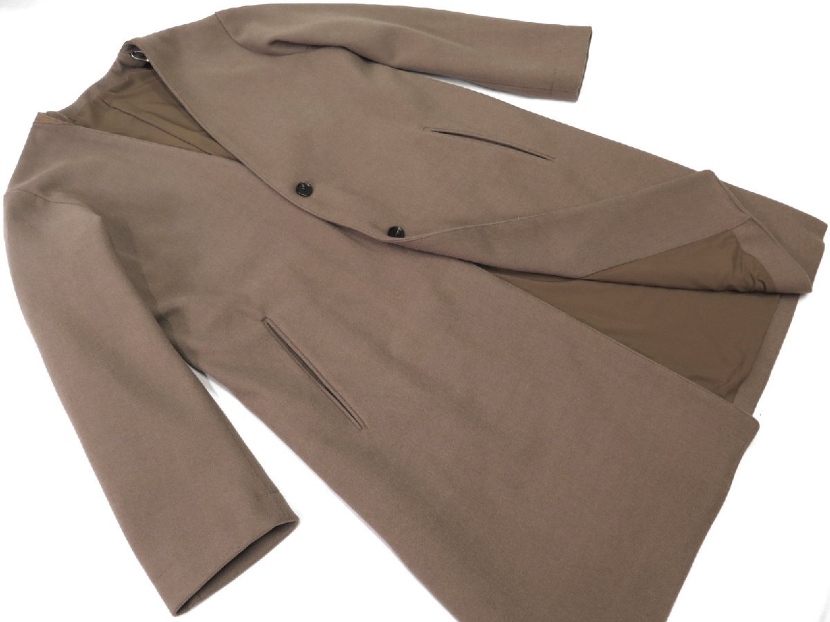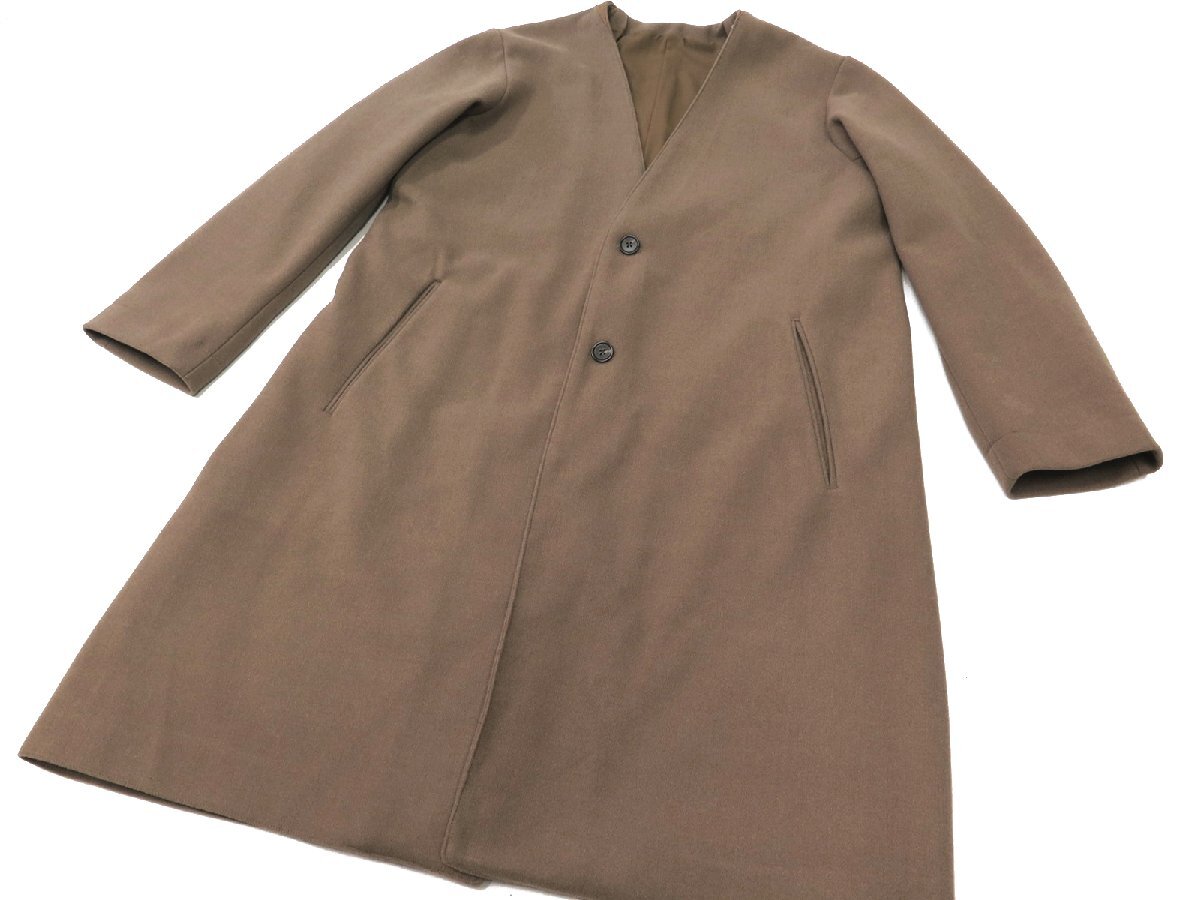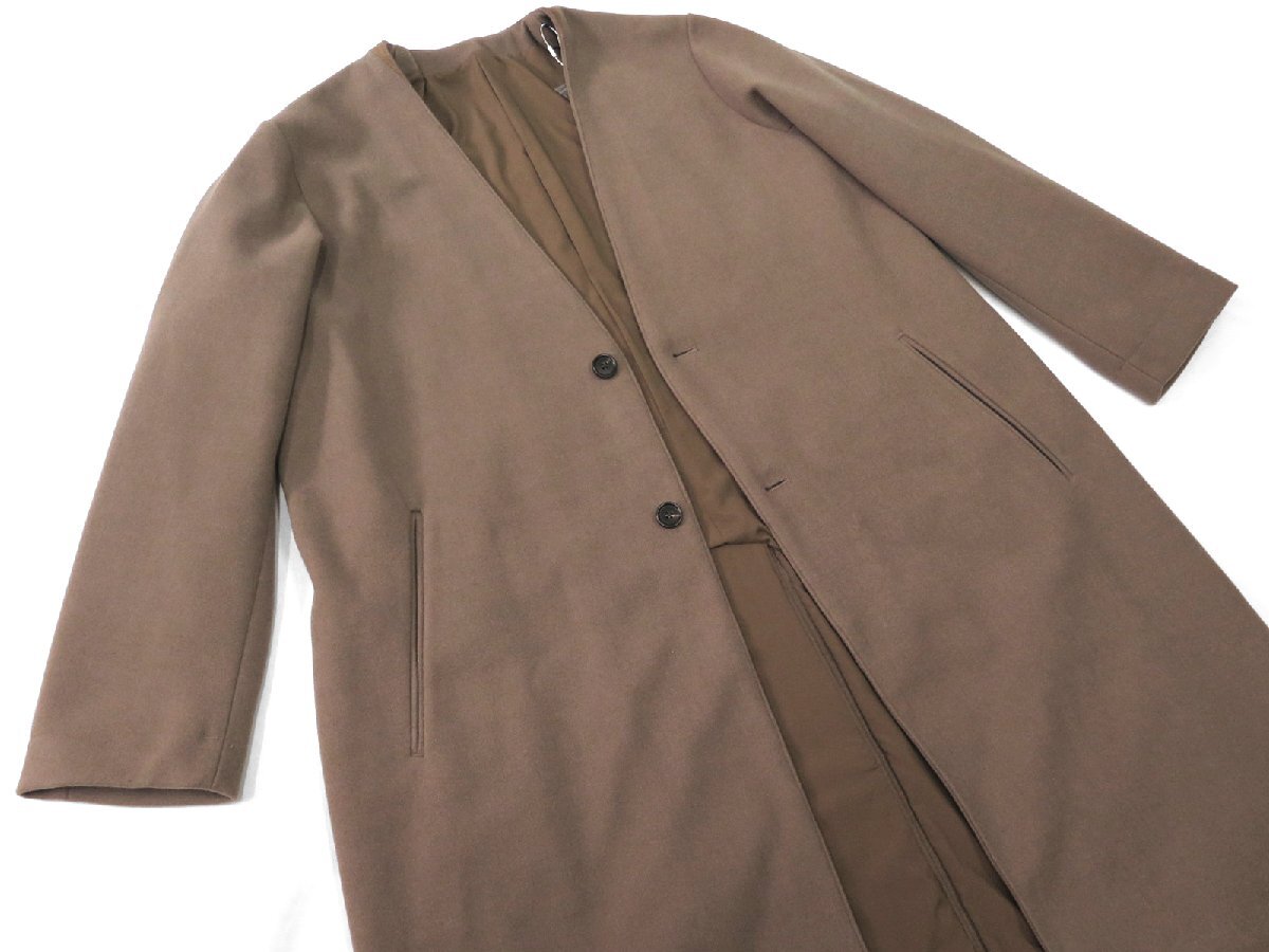 商品名●THE SHOP TK タケオキクチ●新品 【 メルトン 】 ノーカラーコート ベージュ/M 定価19800円