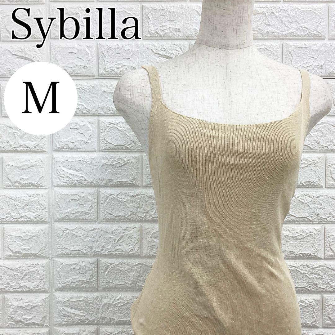 【A4343】 Sybilla シビラ キャミソール リブ編み ニット レディース 無地 レーヨン タンクトップ ベージュ