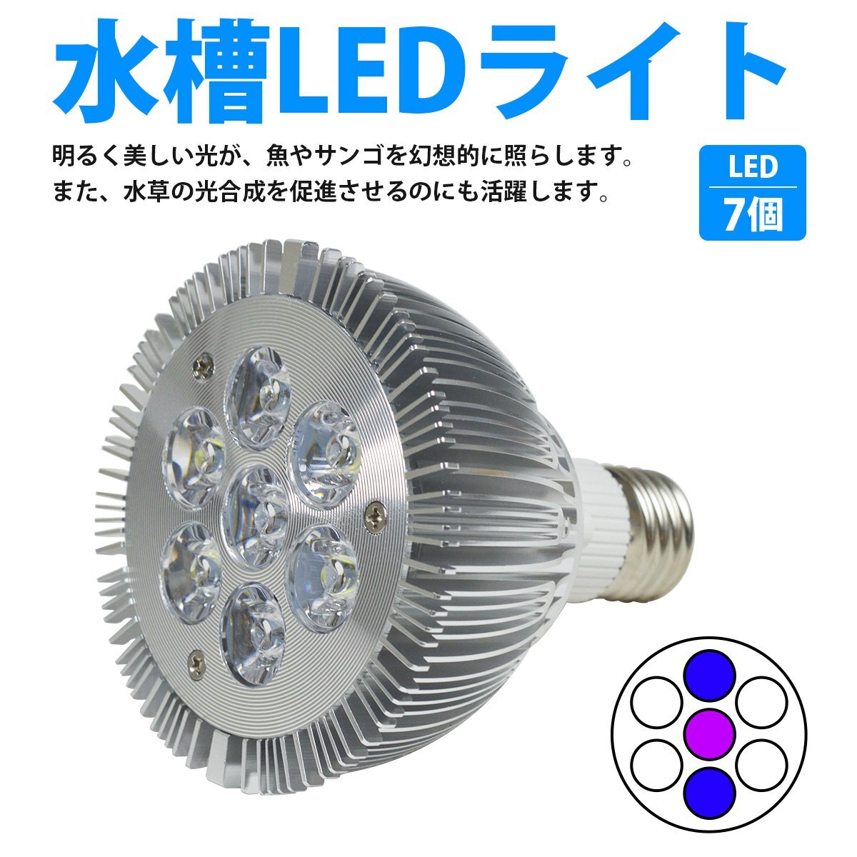 水槽用 スポット ライト 14W 電球 7LED 白4/青2/紫外線1灯UV 口金 E26 アクアリウム 電球 照明 植物育成 水草 サンゴ 熱帯魚