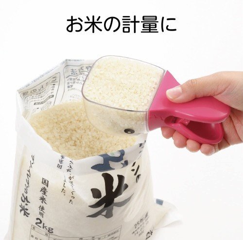 お米を計る計量カップとお米の袋をとじるクリップが ひとつになりました。 |