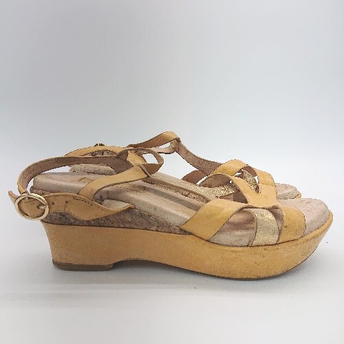 ◇ あしながおじさん ウェッジソール アンクルストラップ サンダル サイズL ベージュ系 レディース E