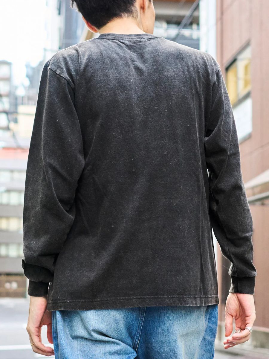 重厚感のあるヘビー天竺ジャージーを使用したロングスリーブTシャツ。しっかりとした肉厚素材ながらもソフトな肌触りで、着用を重ねても型崩れしにくいのが特徴です。