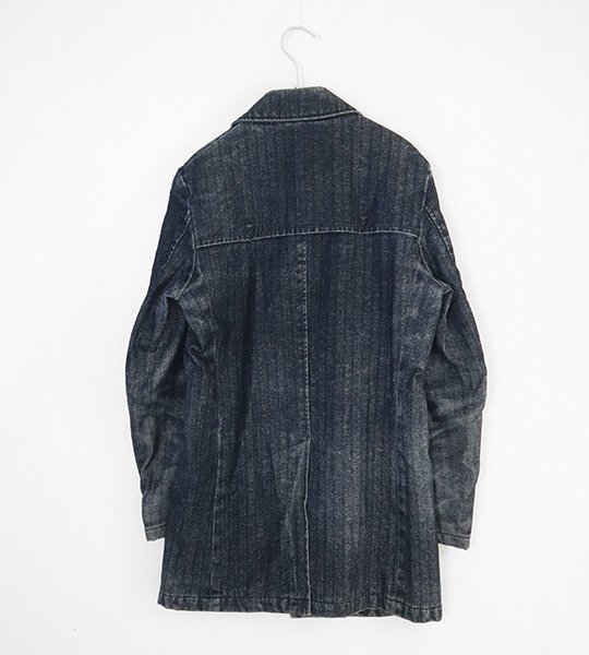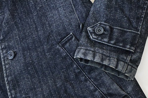 ヘリンボーンデニム素材のスリムなステンカラーコート