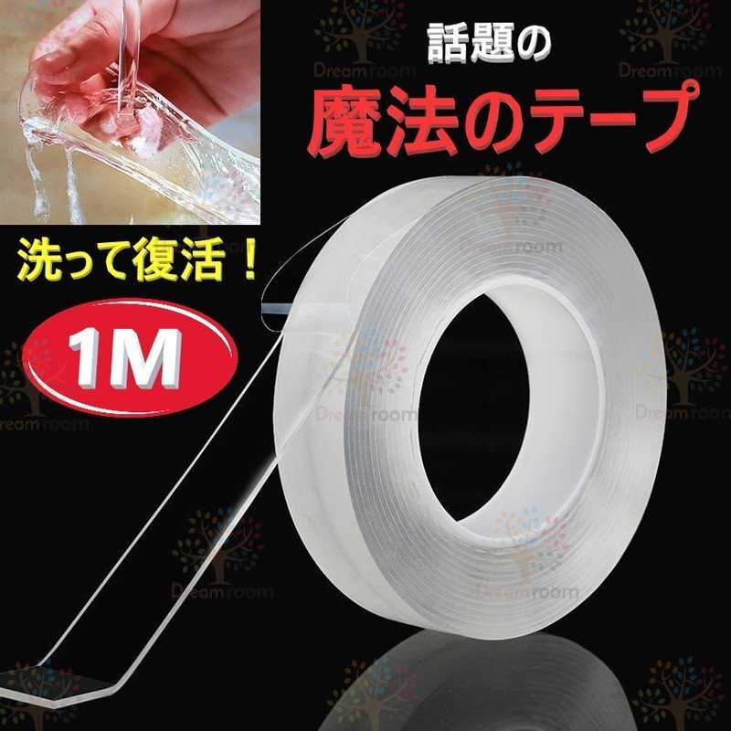 魔法のテープ 1M 透明 滑り止めテープ 強力粘着 3cm幅 両面テープ 防水 耐熱 地震対策 ナノマジックテープ 洗える
