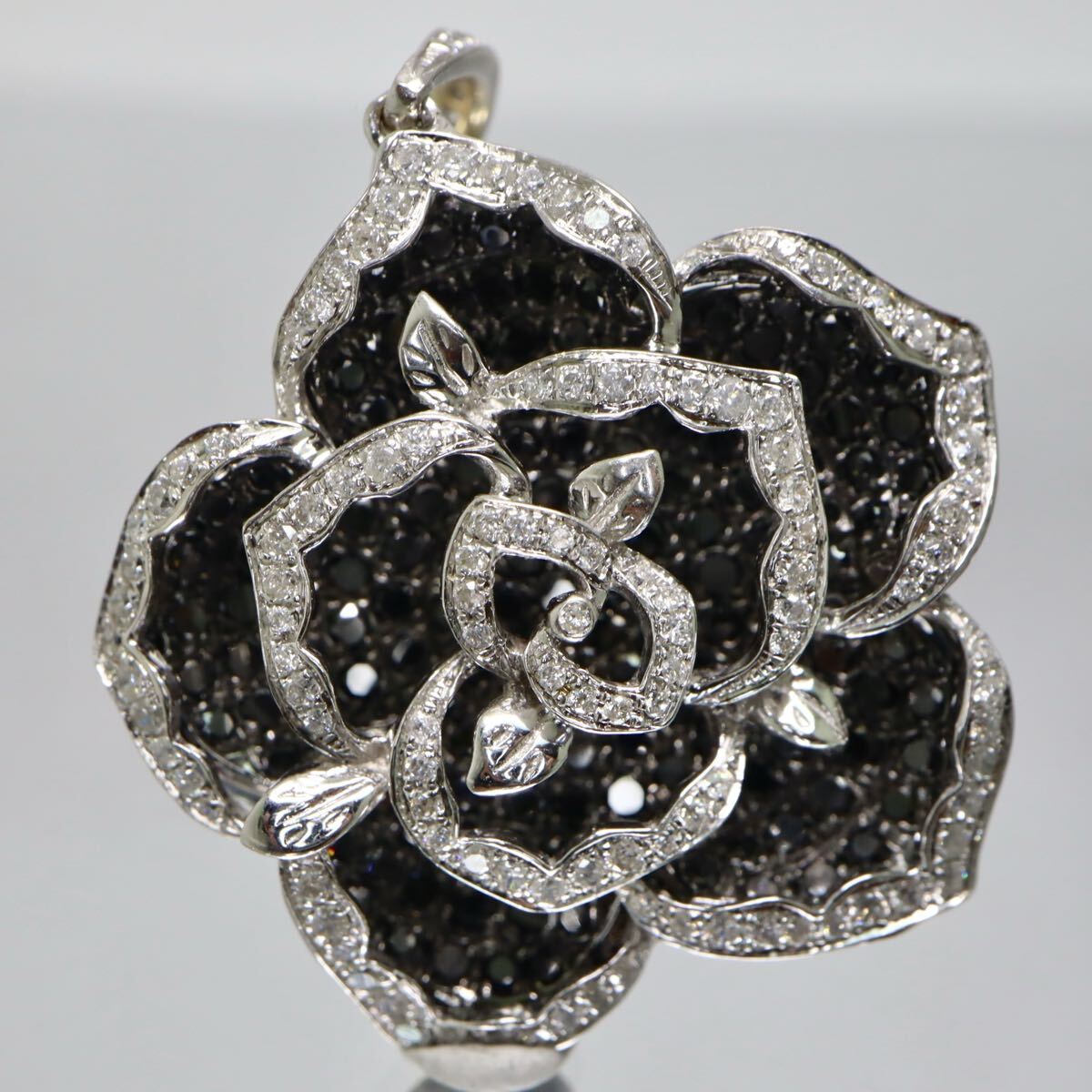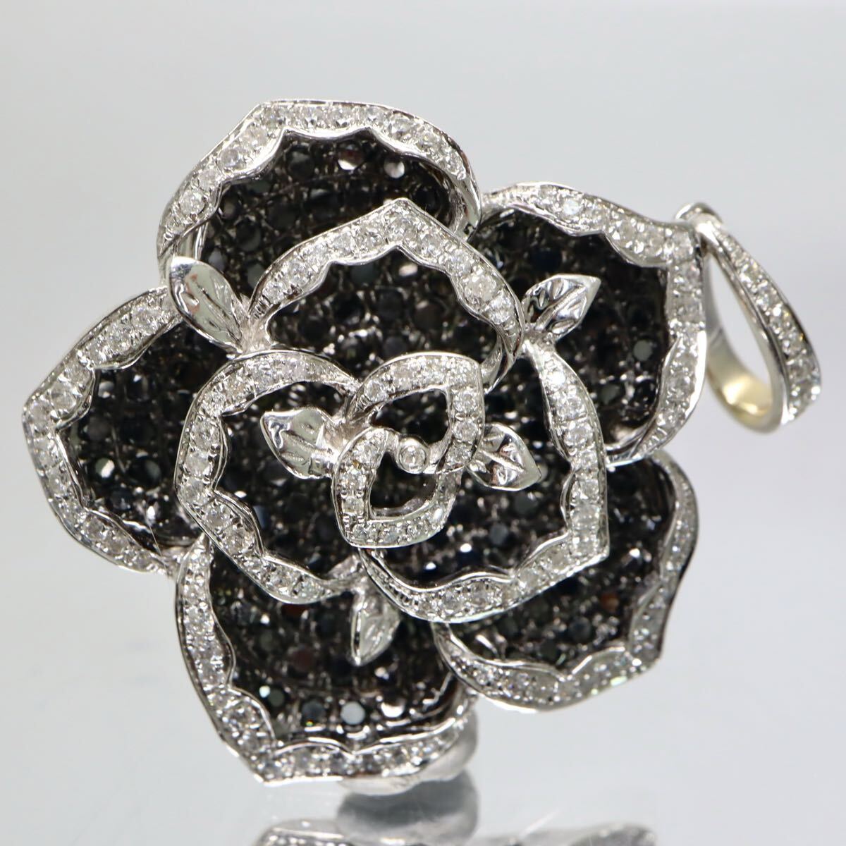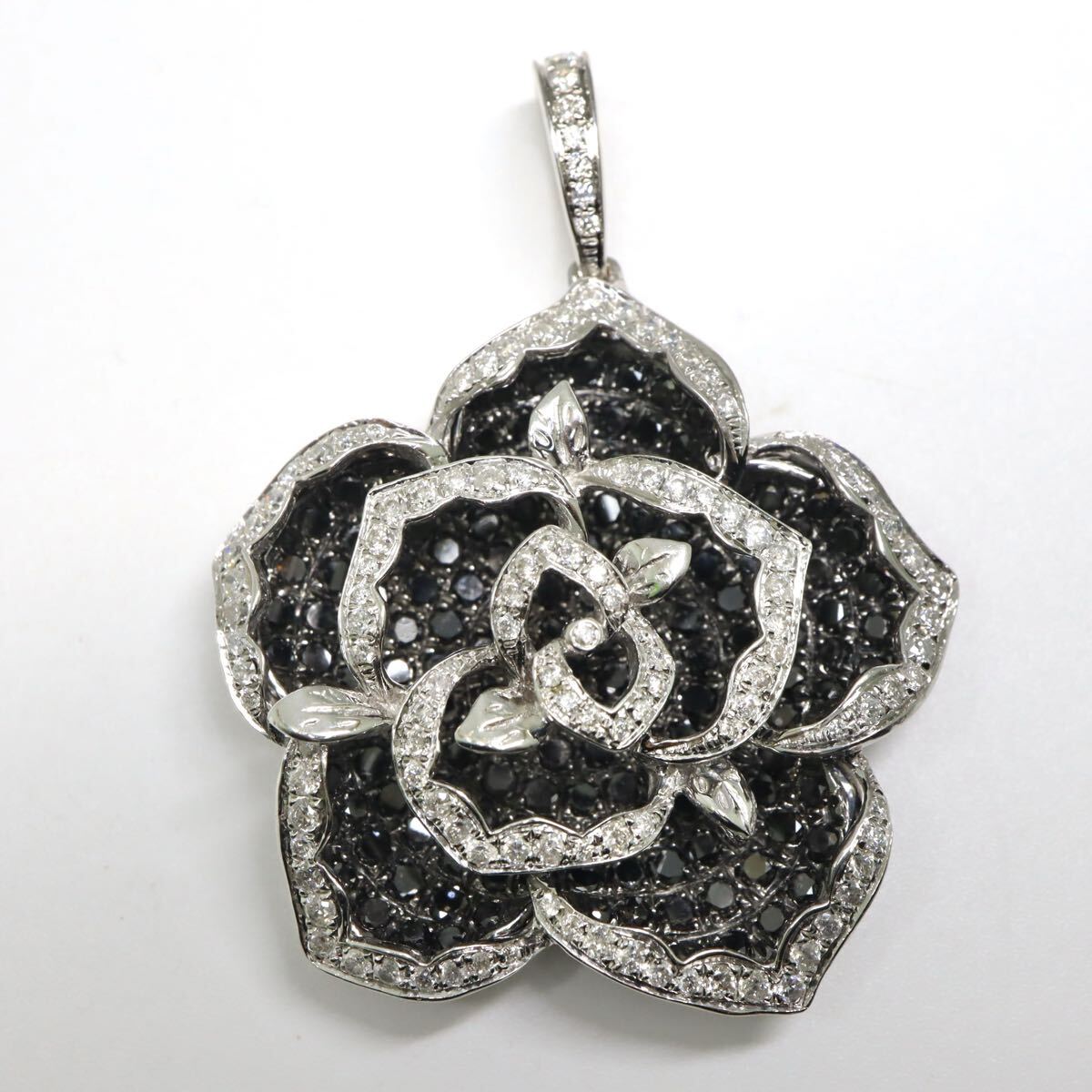 〈バラモチーフ!!天然ブラックダイヤモンド/天然ダイヤモンドペンダントトップ〉