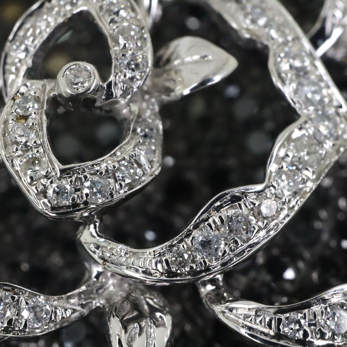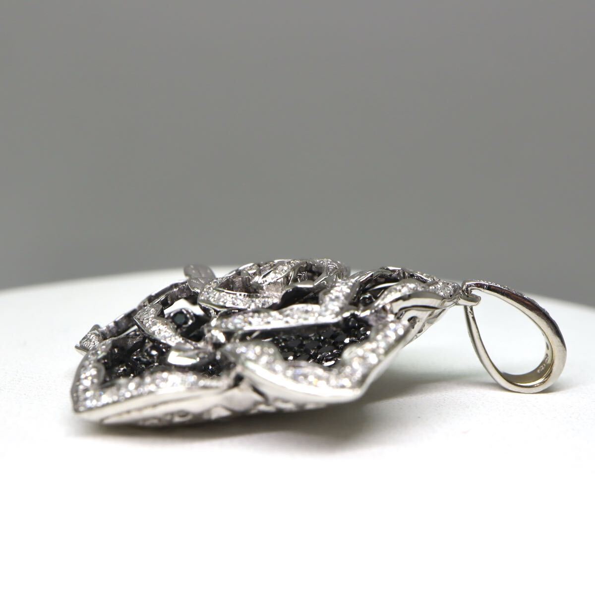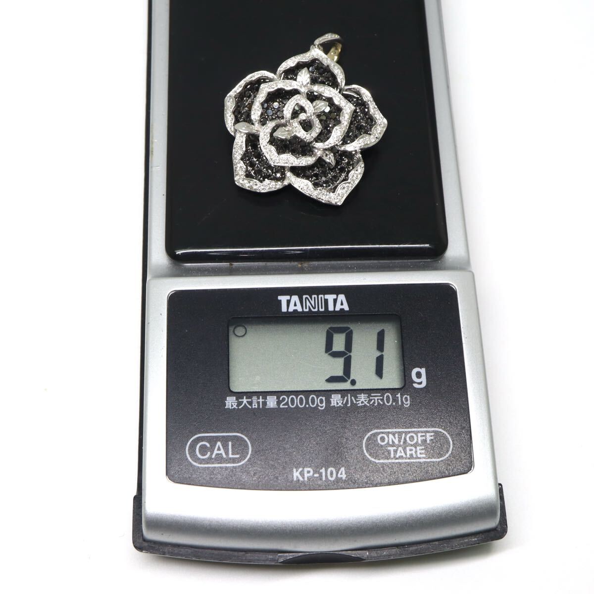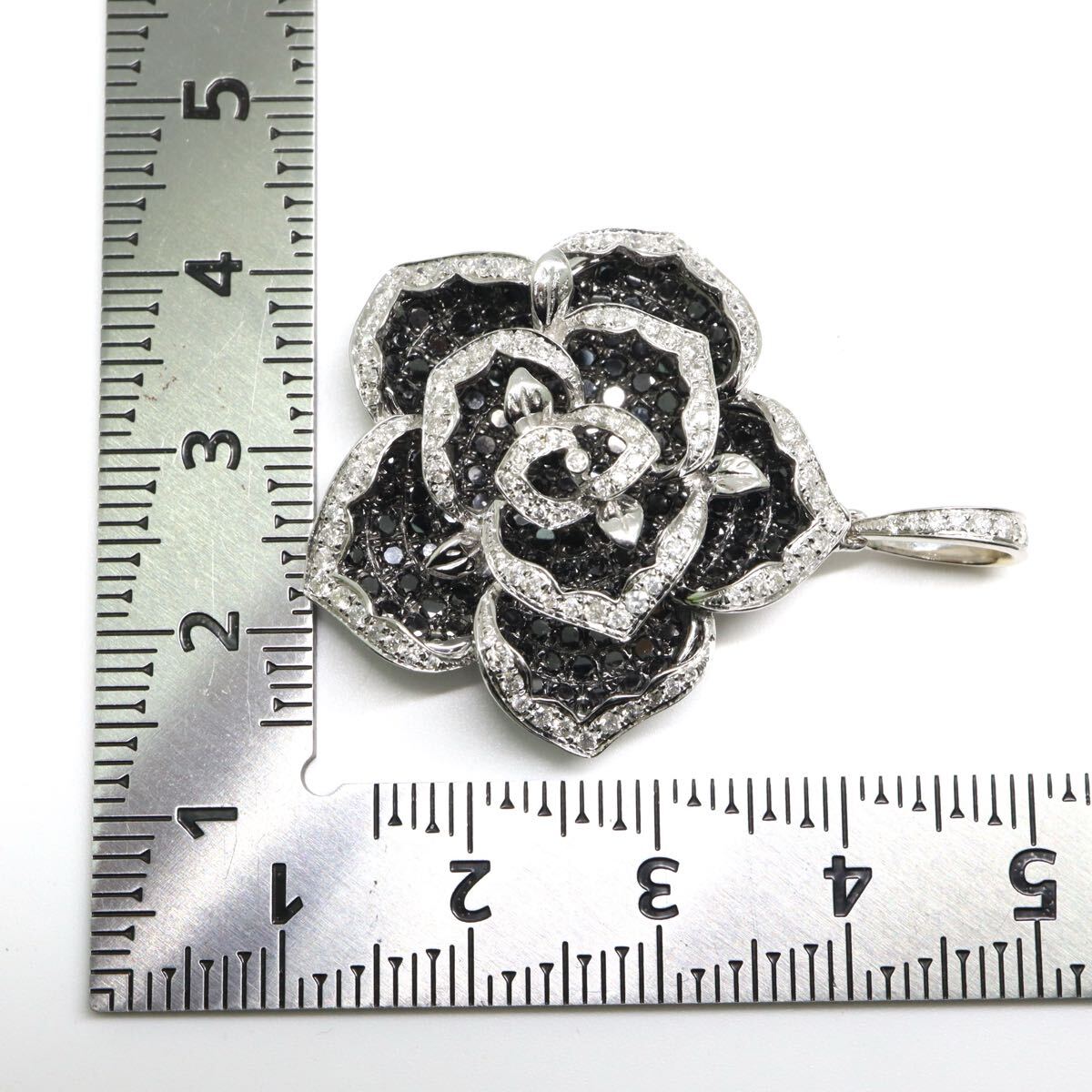 〈バラモチーフ!!天然ブラックダイヤモンド/天然ダイヤモンドペンダントトップ〉