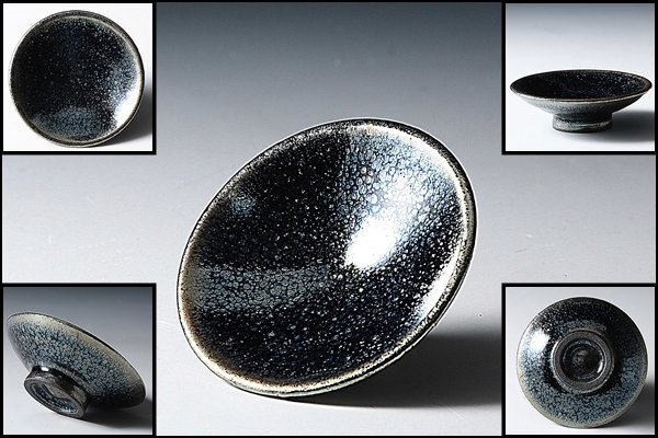 TB017 木村隆 天目 平盃 盃 ぐい呑 杯 酒呑 酒盃 酒杯 酒器 煎茶 茶器
