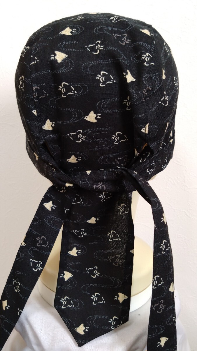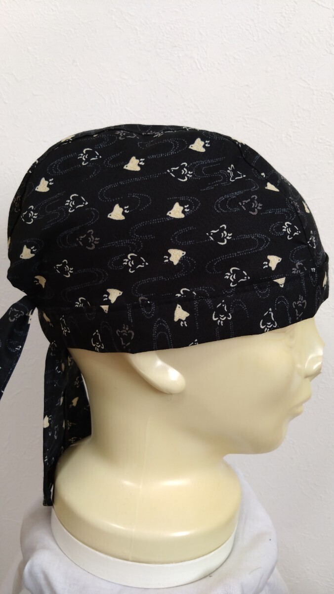 ★バンダナキャップ★ハンドメイド 和柄 千鳥×無地 黒